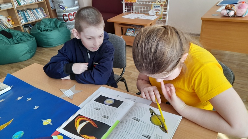 Ребята узнали много интересного о космосе, планетах и звездах, о первом полете Юрия Гагарина. Познакомились с книгами с интерактивной выставки «По просторам Вселенной», с интересом отвечали на «вопросы-звездочки», ответы на сложные вопросы искали в книгах, представленных на книжной выставке. Затем сделали бумажные самолетики и участвовали в игре «Вперед к звездам», в фотозоне сделали «космические фотки».