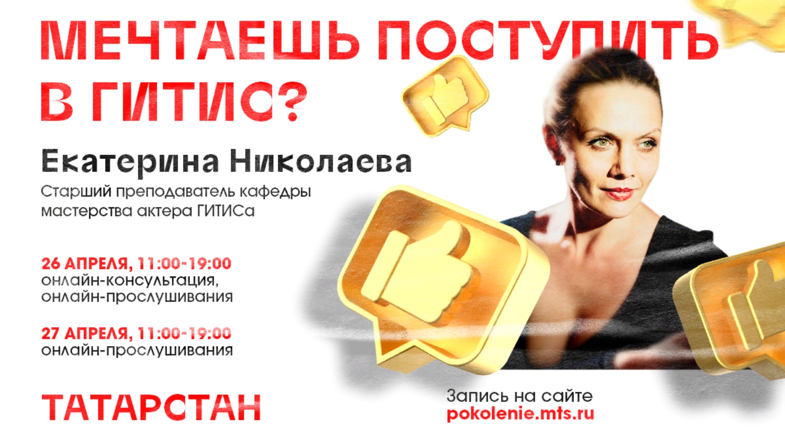 Казань, РФ – ПАО «МТС» (NYSE: MBT, MOEX: MTSS), ведущая российская компания по предоставлению цифровых, медийных и телекоммуникационных сервисов, 26 и 27 апреля вместе с ГИТИС организует онлайн-прослушивания для будущих абитуриентов, по результатам которых участники могут получить рекомендацию для поступления на актерский факультет крупнейшего театрального вуза страны. Не выезжая за пределы своего места жительства, старшеклассники республики смогут попробовать себя на творческих испытаниях в ГИТИС.