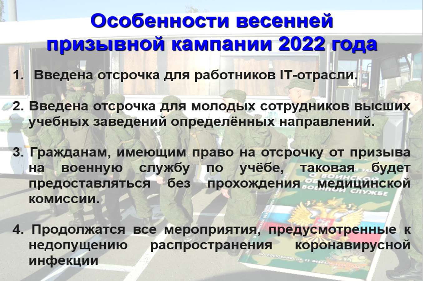 Особенностями весенней призывной кампании 2022 года станут: