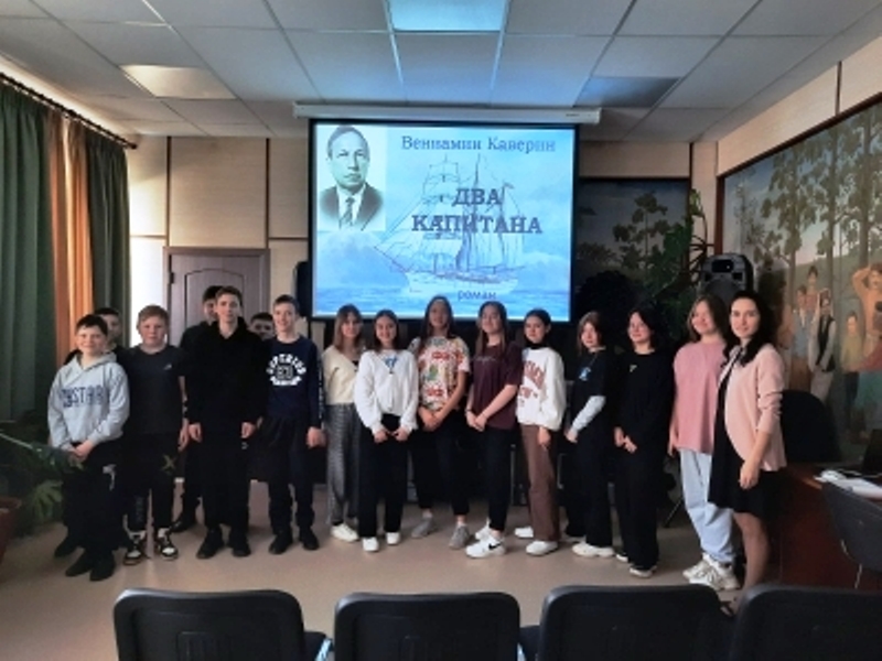 Русский писатель Вениамин Каверин всегда оставляет своему читателю надежду на то, что в мире будут торжествовать справедливость, доброта и человечность. Рассказывая об авторе, сотрудники детской библиотеки обратили внимание ребят на роман «Два капитана» — эта книга удивительной судьбы, она является визитной карточкой писателя. Говорили о том, что это роман о смысле жизни и достижении цели. Завершая встречу, не обошлось и без викторины. Ответы на неё выявили, как ребята запомнили рассказ библиотекаря о творчестве писателя.