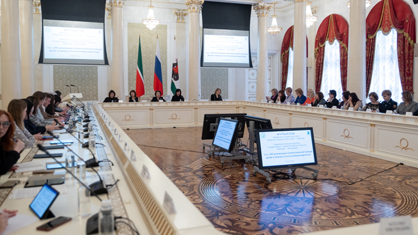 В заседании, прошедшем в формате круглого стола, приняли участие представители федеральных, республиканских, муниципальных органов государственной власти, общественных организаций и объединений, имеющих практический опыт работы по обсуждаемой теме. Модераторами встречи стали депутат Казгордумы, руководитель объединения женщин-депутатов «Өмет – Надежда» Людмила Андреева и депутат Госсовета РТ, руководитель объединения женщин-депутатов «Мэрхэмэт – Милосердие» Алсу Набиева.