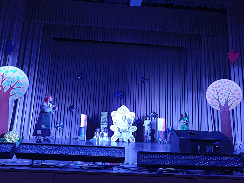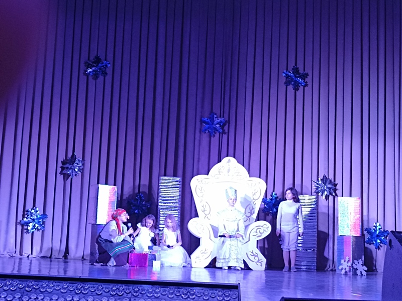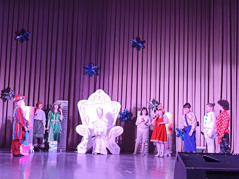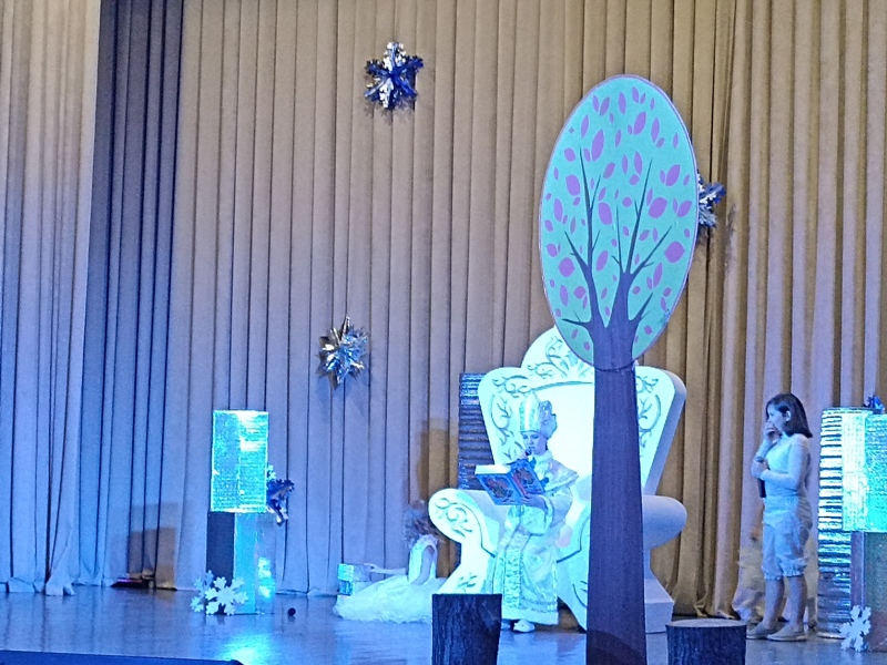 Занавес открывается и вот сказка начинается. Перед зрителями появляются Снежинки, которые решили сделать подарок своей Снежной королеве и заманить всех не читающих ребят во дворец. Они оставляют загадочное письмо с просьбой выручить из снежного плена. В это время появляется Снеговик и вызывает сказочных героев: Василису Премудрую, Домовенка и Карлсона. Василиса Премудрая и Карлсон отправляются в путь, а Снеговик и Домовенок остаются охранять подарки для награждаемых ребят. Баба яга и Кикимора не дремлют и с помощью Снежной королевы и ее помощника Снежка похищают подарки, а на выручку к Василисе и ее друзьям приходит Старик Хоттабыч. В конце концов, добро побеждает зло. Ребята получают свои подарки и дипломы, которые им вручила начальник Управления культуры Шигапова Е.В., отметив самых лучших читателей Детской библиотеки по итогам 2021 год и победителей районного конкурса лэпбуков «Посвящаю, мой город, тебе».