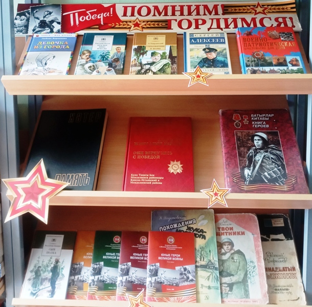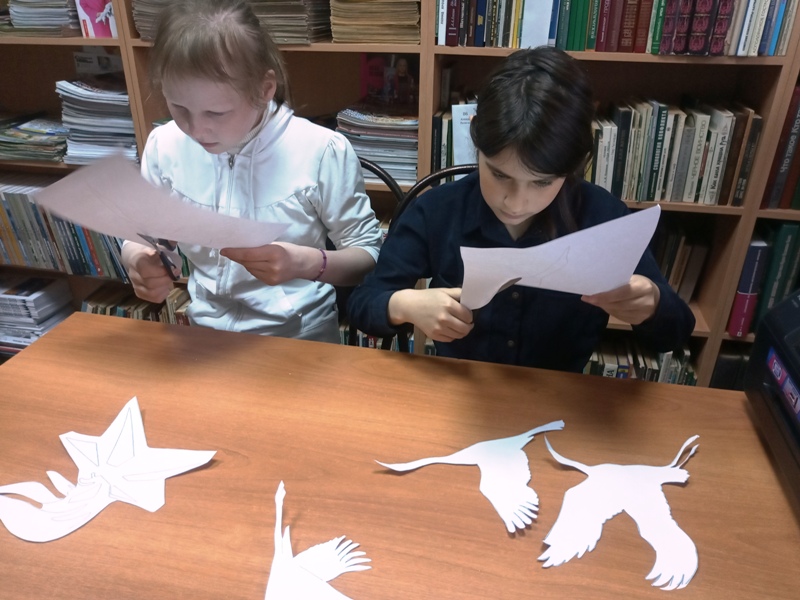 В начале мероприятия библиотекарь рассказала о значении Победы, о подвиге советского народа в годы войны. Для громкого чтения были выбраны рассказы С. Алексеева «Ни шагу назад», «Железный батальон», «Знамя Победы» Эти рассказы познакомили ребят с отдельными военными страницами и событиями. Также в этот день звучали стихотворения о войне и мире, о победе. Стихи Сергея Михалкова «День Победы», Михаила Кривова «Спасибо деду за Победу». Библиотекарь познакомила с выставкой книг о войне «Помним, гордимся!», где были представлены детские книги о войне: Л. Кассиля «Твои защитники»., К .Паустовского «Похождения жука-носорога, С. Алексеева «Сто рассказов о войне, В .Катаева «Сын полка», Е. Воробьева «Тринадцатый лыжник», А. Твардовского «Стихотворения и поэмы», сборники произведений «Книга героев», »Память», серия книг «Юные герои великой войны». В завершении мероприятия дети вырезали фигуры журавлей и оформили «Окно победы»