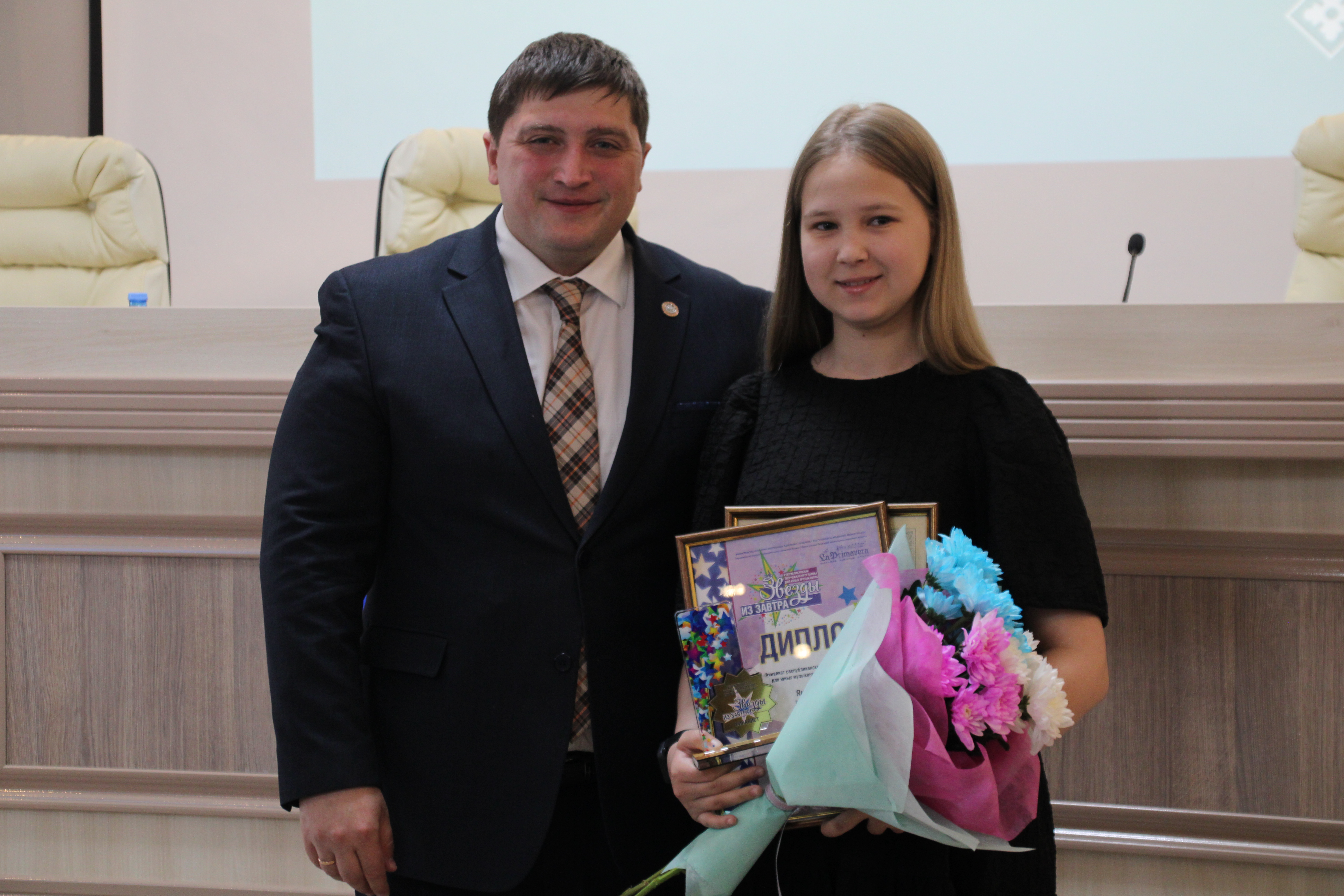 Далее Благодарственным письмом Руководителя района за достижение высоких результатов в республиканской творческой программе для юных музыкантов «ЗВЁЗДЫ ИЗ ЗАВТРА» награждена Яна Шалаумова - учащаяся 7 «Г» класса МБОУ "СОШ №1 им. Героя Советского Союза М.С. Фомина г. Менделеевска".