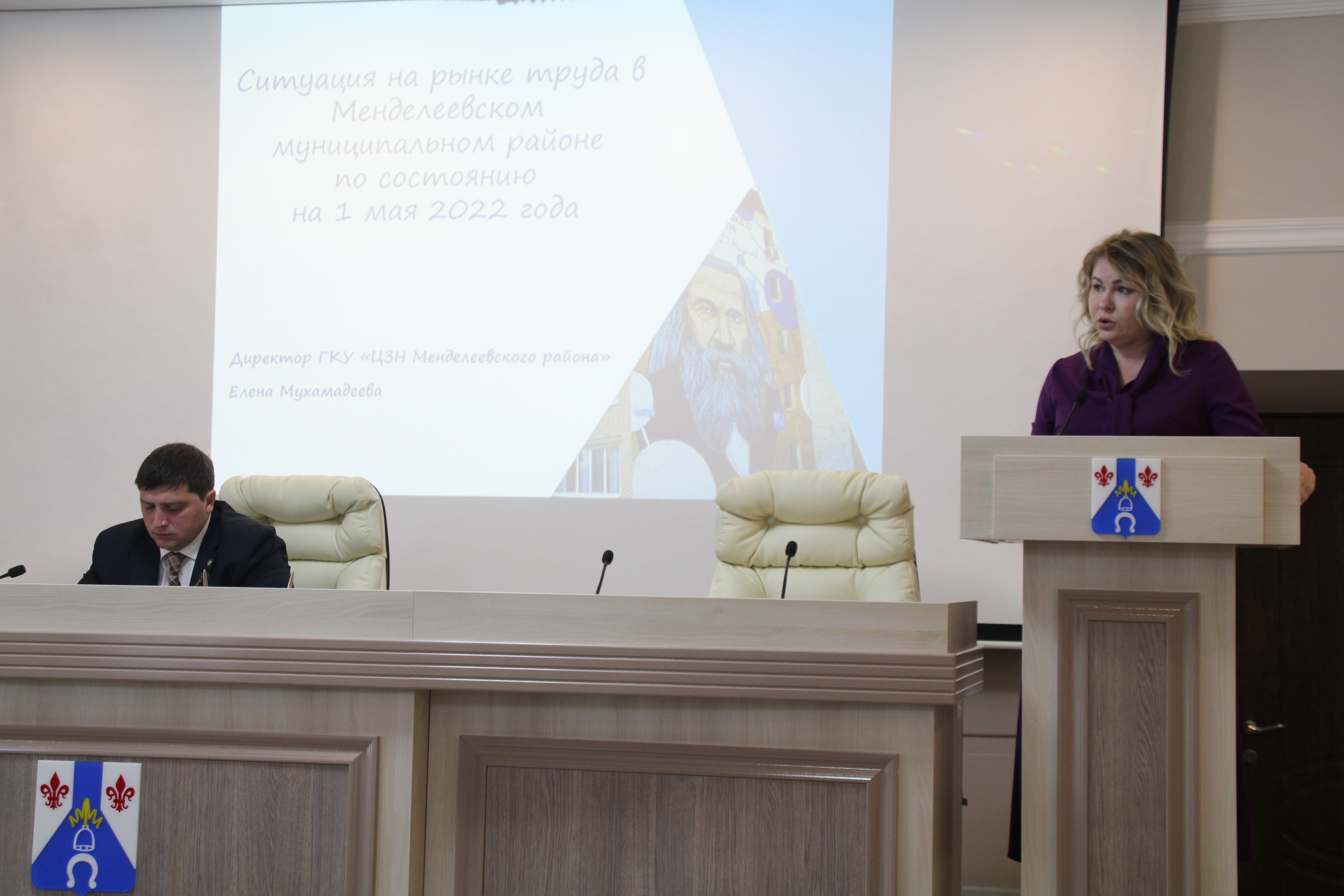 Также о ситуации на рынке труда на 1 мая 2022 года в Менделеевском районе рассказала Елена Мухамадеева - директор ГКУ «Центр занятости населения».