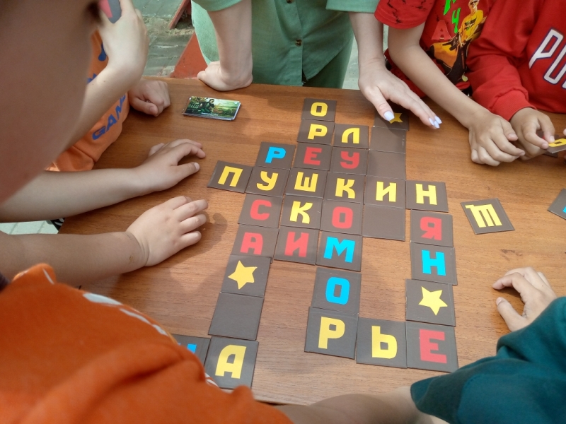 Участники мероприятия отвечали не только на вопросы о жизни и творчестве Пушкина, но и складывали слова из произведений поэта в игре «Крестословица». За каждый верный ответ и новое составленное слово дети получали сладкие призы. Сотрудниками библиотеки также была подготовлена выставка книг писателя и фотозона к Пушкинскому дню России.