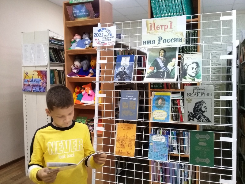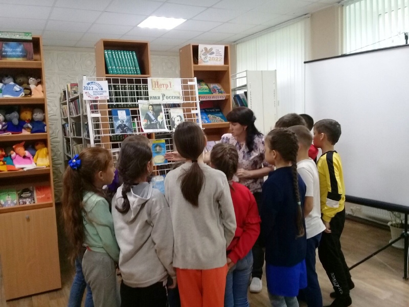 Была оформлена книжная выставка "Петр I - имя России". Библиотекарь познакомила ребят с биографией и интересными фактами из жизни Петра I. В ходе мероприятия ребята узнали, какой большой вклад внес великий реформатор для развития великого государства, и что благодаря многогранной деятельности Петра I Россия превратилась в великую державу. Мероприятие закончилось просмотром мультфильма "Кто такой Петр I?", обсуждением увиденного и обзором выставки.