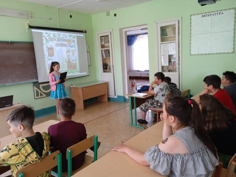 Мы живем в великой стране с богатой историей. День России отмечают во всех уголках нашего государства. Таким образом, мы прославляем великую страну со своими традициями, историей, народом, победами. Библиотекарь Камаевской сельской библиотеки Галимуллина Г. М. для детей пришкольного лагеря провела литературный час “Ватан нидән башлана”, посвященную Дню России.