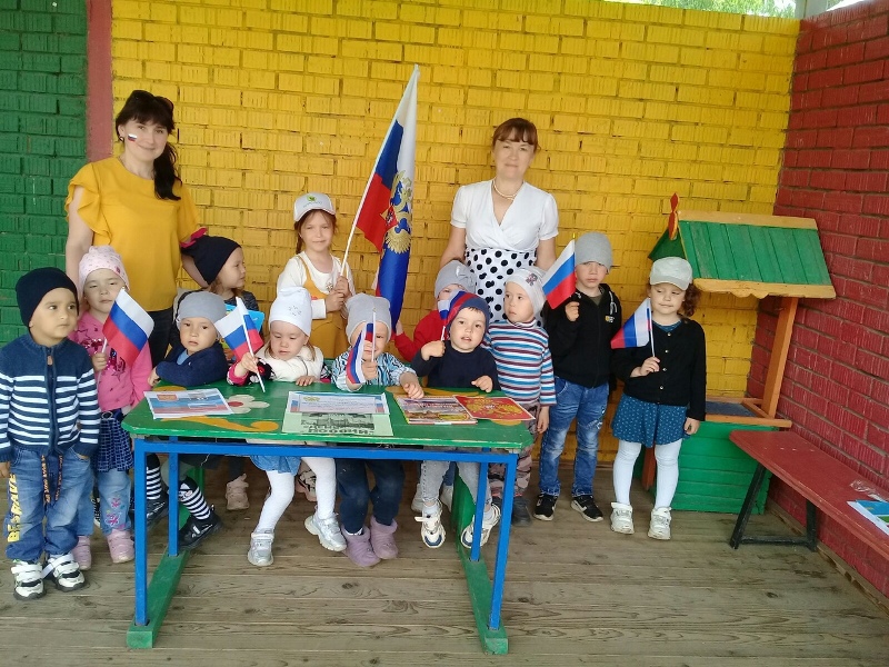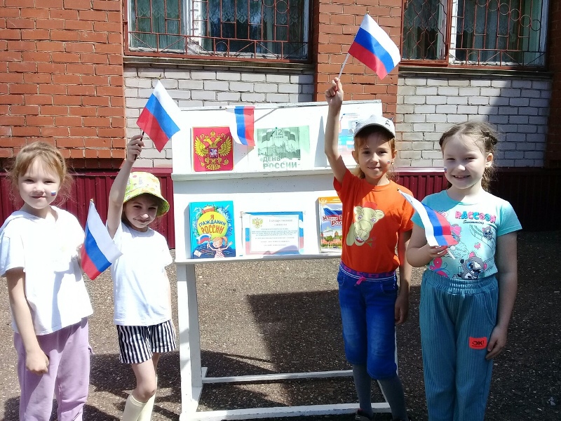Была оформлена книжно-иллюстрационная выставка «12 июня – День России». Мероприятие началось с торжественной песни - гимна России. Библиотекарь познакомила ребят с историей праздника, рассказала о государственных символах и их значениях. Все с удовольствием участвовали в игровой викторине «Я живу в России», посвященная государственным символам России, ее истории и культуре. В конце мероприятия все вместе станцевали танец-флешмоб под песню «Россия – мы дети твои». С дошкольниками была проведена познавательная беседа о государственных символах.
