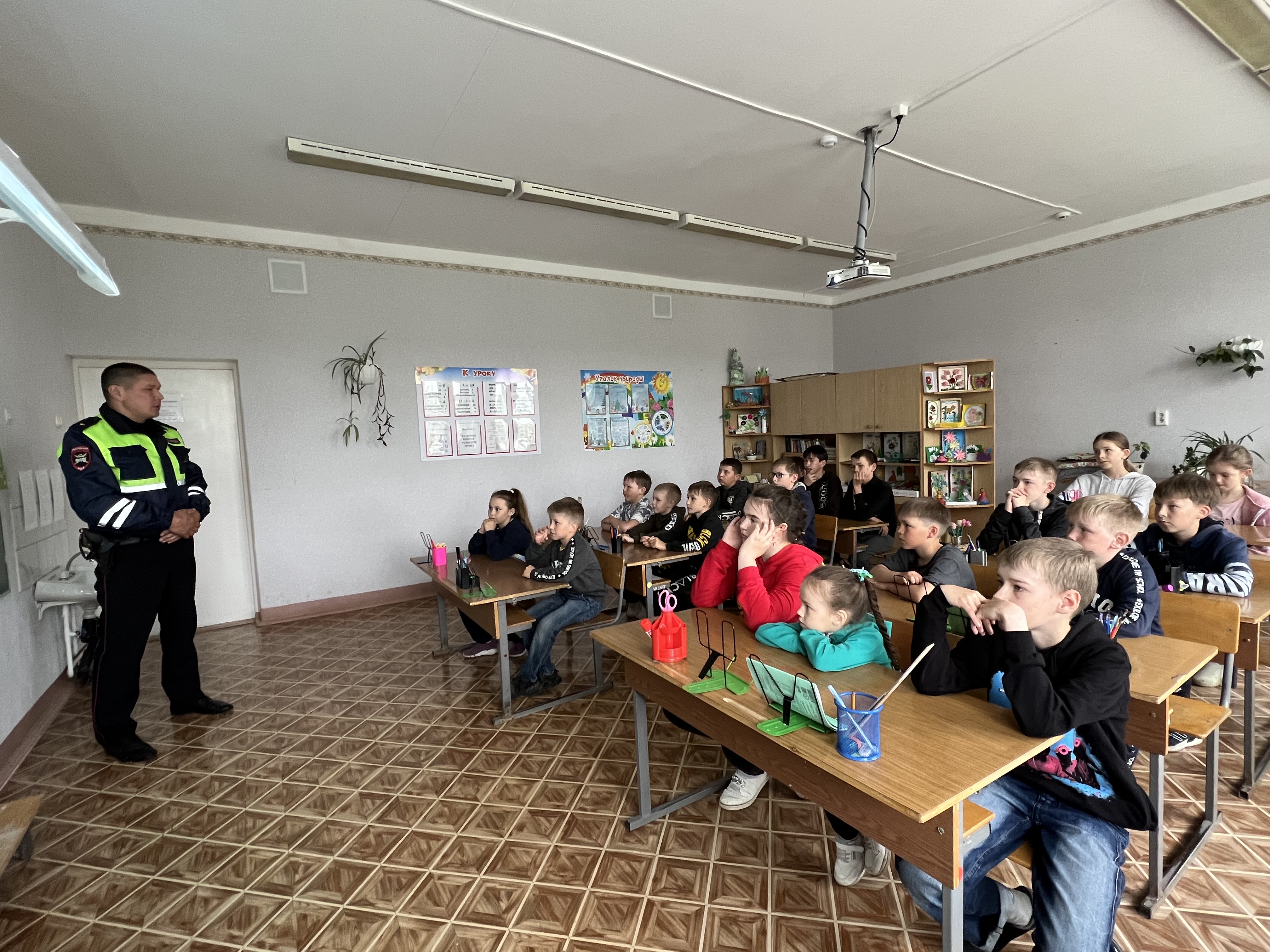 Начальник ОГИБДД отдела МВД России по Менделеевскому району Алгуатов К.Р. совместно с начальником отдела профилактики ГБУ «БДД» по району Халикуловой М.И. провели беседу, где были разъяснены правила безопасного поведения вблизи проезжей части, наиболее часто встречающихся опасных дорожных ситуаций.