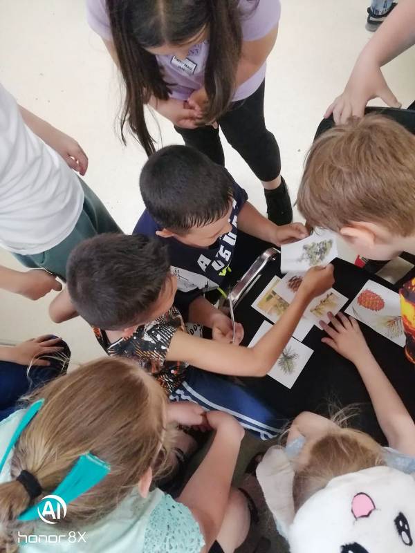 Ребята совершили путешествие в хвойный лес и узнали, что такое хвоя и почему деревья называются хвойными, а так же чем они отличаются от лиственных деревьев. Библиотекари Е.Назарова и Л.Галиуллина загадывали загадки, в которых спрятались деревья, и вместе с детьми выполнили задание приготовленные белочкой, с удовольствием принимали участие в играх с шишками: «Не зевай», «Шишкобол», «Эстафета с шишками», «Приключения семьи Шишкиных». В заключении ребята с удовольствием посмотрели мультфильм «Шишка».