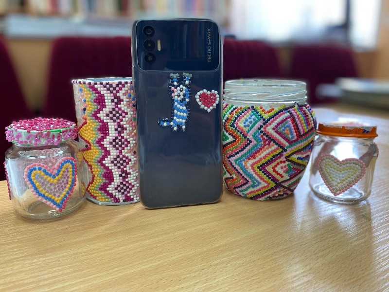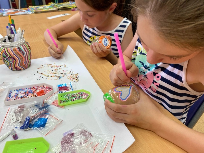 В Мунайкинской сельской библиотеке прошёл творческий мастер-класс по декорированию баночек с помощью техники алмазной вышивки (мозаики) «Летнее настроение».