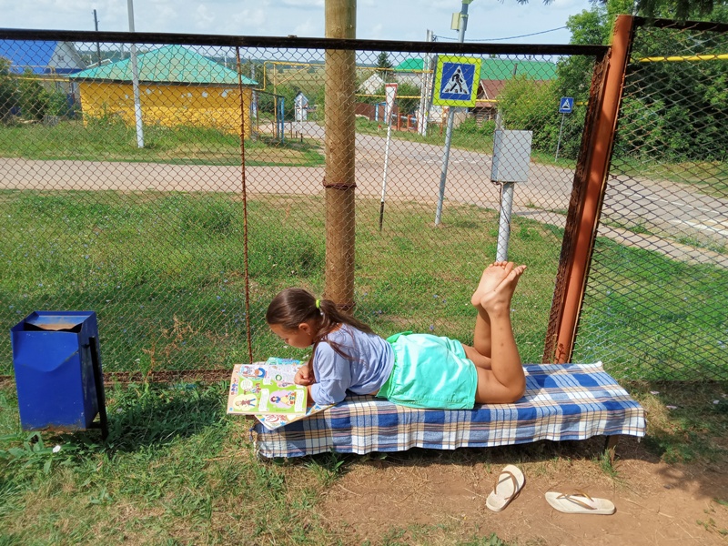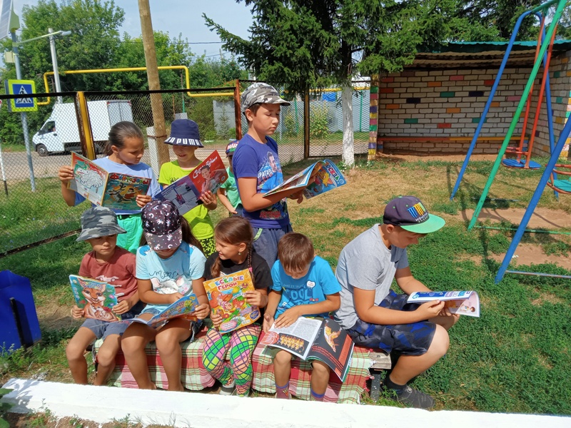 В день книголюбов на лужайку рядом с Тураевской сельской библиотекой пришли дети и желающие провести один день каникул в компании с книгой.