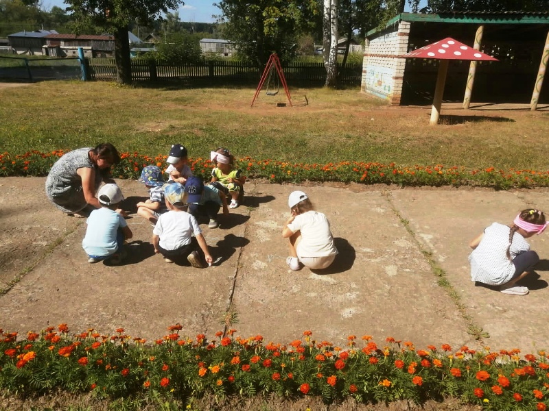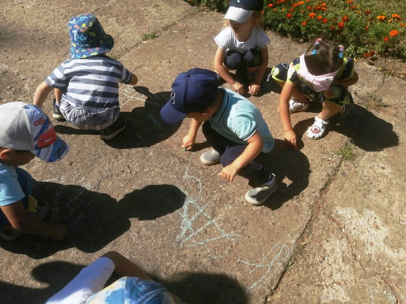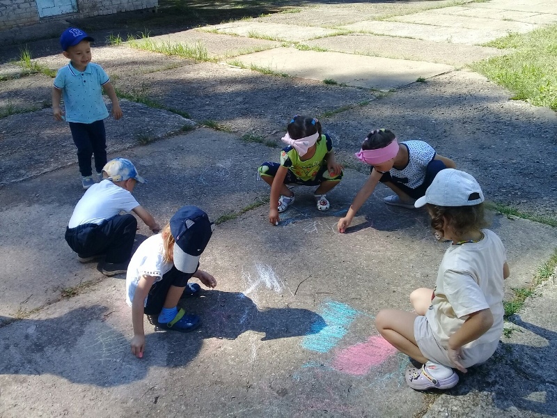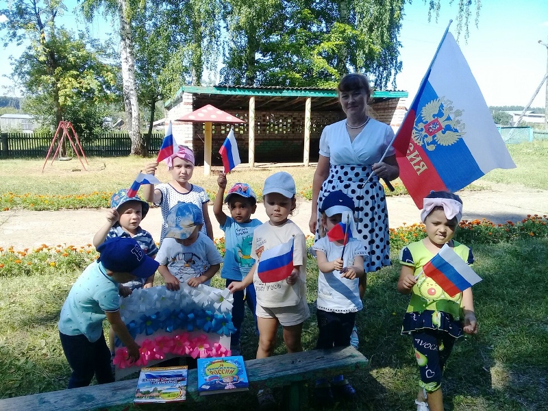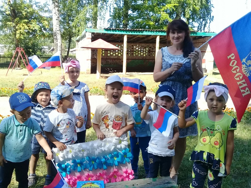 В ходе беседы ребятишки познакомились с государственными символами: гербом, флагом, гимном. Узнали, что означают цвета триколора, какие национальности живут в России. В заключение мероприятия с удовольствием рисовали на асфальте.