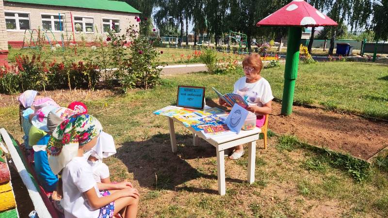 29 августа участниками акции «Книжка на ладошке – 2022» стали воспитанники Бизякинского детского сада «Ляйсан». Для прочтения вслух были выбраны книги Светланы Савицкой «Три лягушонка» из серии «Современные авторы – детям» и татарского писателя Накипа Каштан «Кто хитрее». Дошкольники познакомились с веселыми дачными историями лета и добрыми героями сказок, затем провели беседу. Во время беседы юные участники акции рассказали о своих любимых книгах, которые им читают дома и в детском саду. Мероприятие прошло в дружеской атмосфере.