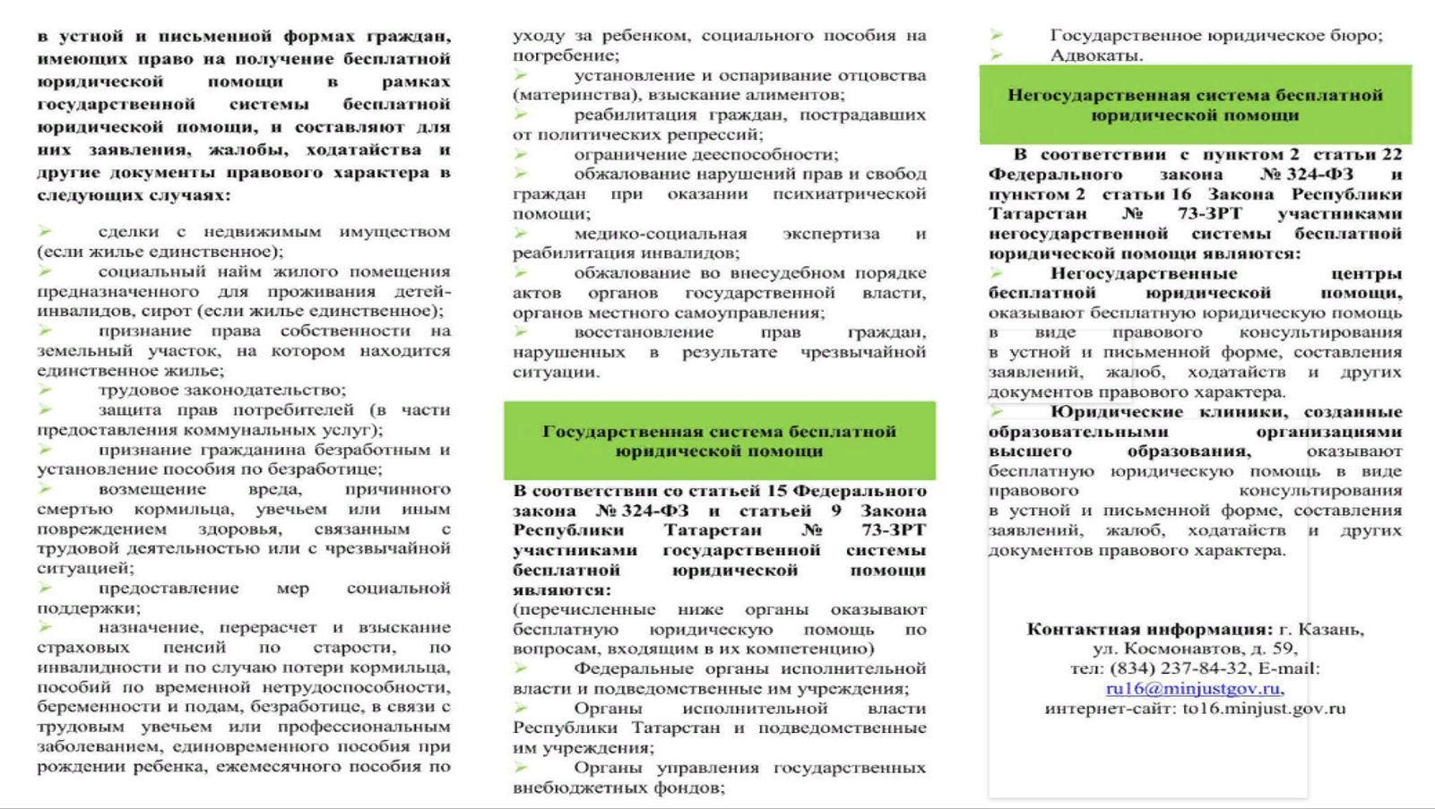 Памятка об оказании бесплатной юридической помощи на территории Республики Татарстан