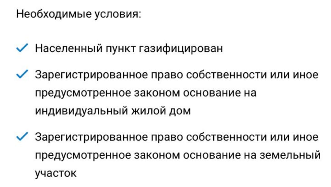 В рамках президентской программы «догазификация» согласно постановлению Правительства Российской Федерации от 13 сентября 2021 г. N 1547 идет сбор заявок на бесплатную догазификацию до границы земельного участка.