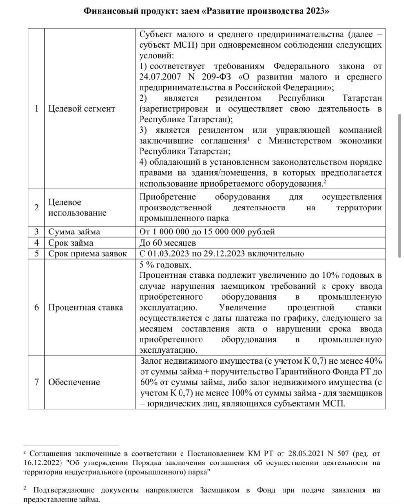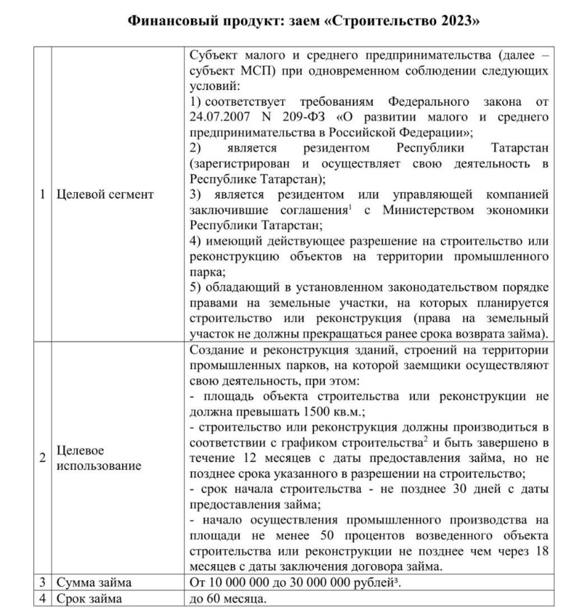 Министерство экономики Республики Татарстан (далее – Министерство) сообщает о начале с 06 марта 2023 года приема заявок некоммерческой микрокредитной компанией «Фонд поддержки предпринимательства Республики Татарстан» (далее – Фонд) на льготные финансовые продукты: заем «Строительство 2023» и заем «Развитие производства 2023». Продукты созданы для поддержки деятельности управляющих компаний муниципальных промышленных (индустриальных) парков и их резидентов, заключивших соглашения с Министерством.