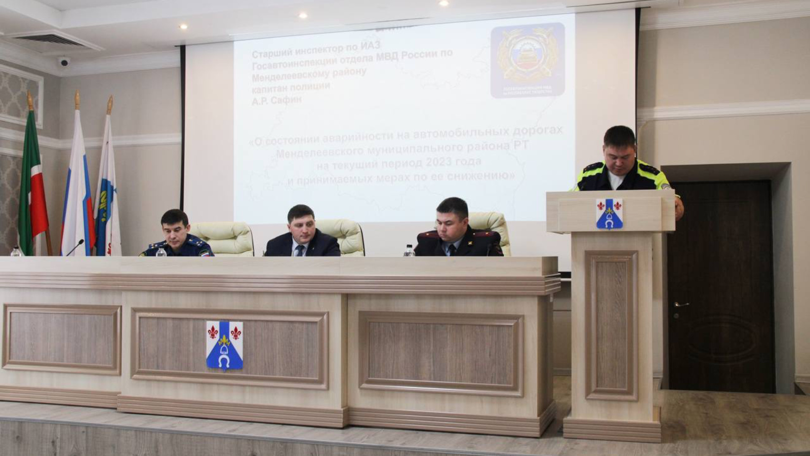 В администрации прошло очередное заседание комиссии по безопасности дорожного движения с участием Главы района Радмира Беляева, прокурора района Ришата Шакирова и начальника отдела МВД России по Менделеевскому району Романа Водникова.