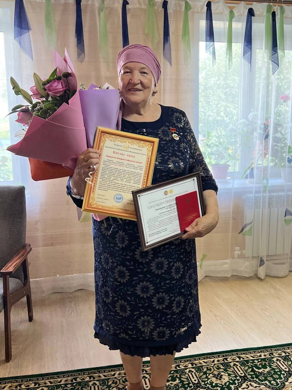 От имени Заместителя Премьер-министра РТ - министра сельского хозяйства и продовольствия РТ Марата Зяббарова, Совета ветеранов агропромышленного комплекса Республики Татарстан вручили юбилярше Благодарственный письма, а также Медаль "Почетный ветеран агропромышленного комплекса РТ". Весь жизненный путь Альфии Сафиулловны, после окончания Казанского ветеринарного института им.Э.Баумана, неразрывно был связан с аграрной отраслью. В разные годы она работала главными зоотехником и экономистом колхоза «Волна революции» с.Поспелово Елабужского района РТ, главным экономистом ПСК «Батыр кул» Менделеевского района РТ, директором ООО «Батыр кул». Создав семью в 1975 году с Равилем Гаптельхаковичем, прожили душа в душу и гармонии более 40 лет. Супруги Хайриевы воспитали двоих сыновей. Альфия Сафиулловна, будучи уже много лет находясь на заслуженном отдыхе, во всём помогает сыну Ильнуру КФХ «Хайриев» в ведении фермерского хозяйства - в летний период в разгар полевых работ готовит обеды и ужины для работников, зимой - в уходе за сельскохозяйственными животными. Желаем Вам, Альфия Сафиулловна, крепкого здоровья на долгие годы и благополучия в семье. Спасибо за ваш самоотверженный труд на благо района, республики и всей нашей страны! С Днем рождения!