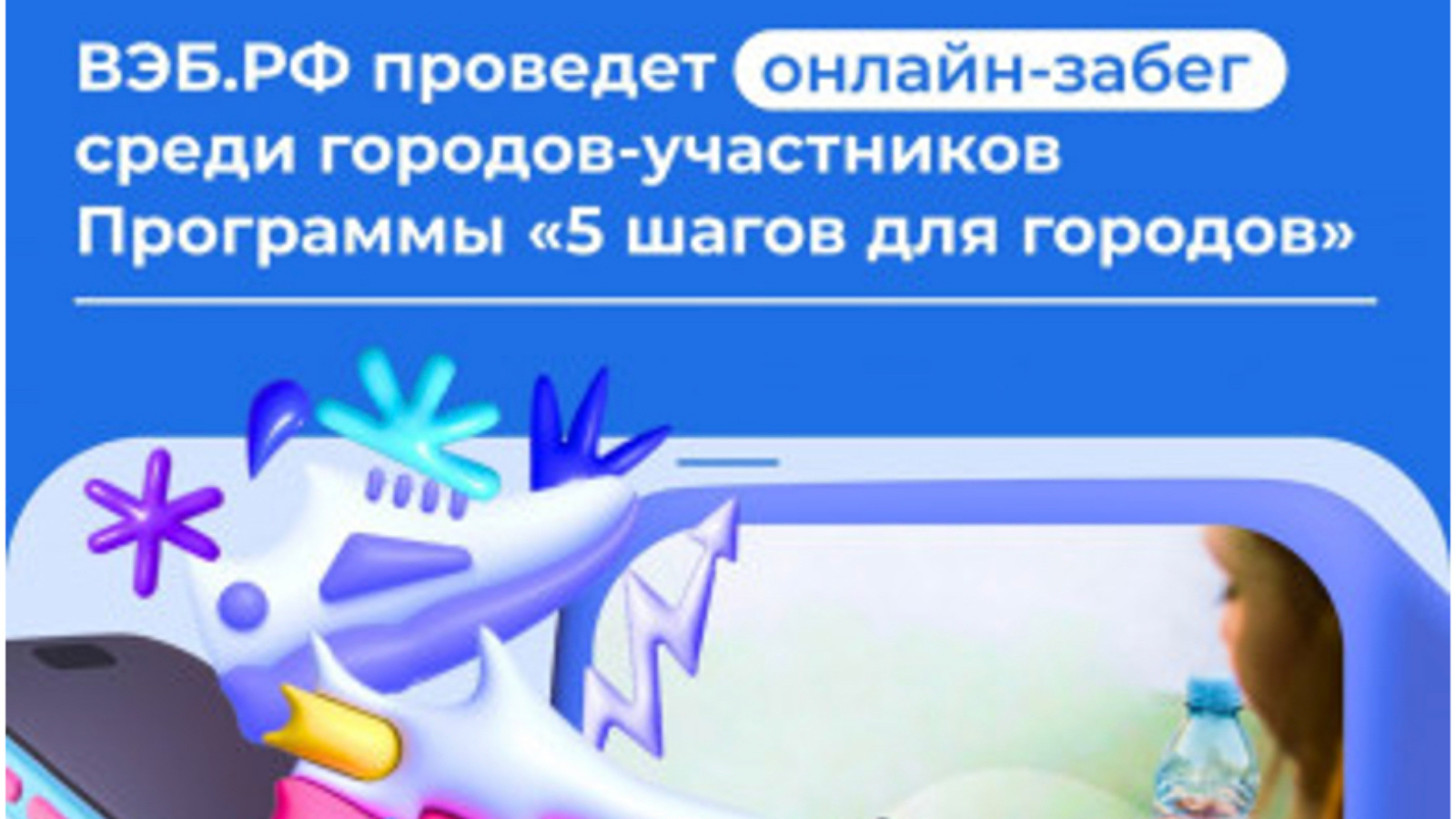 Государственная корпорация развития «ВЭБ.РФ» в рамках реализации программы «Пять шагов для городов» проводит 2-3 сентября онлайн-забег «Добавь энергии родному городу».