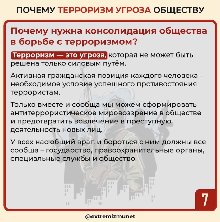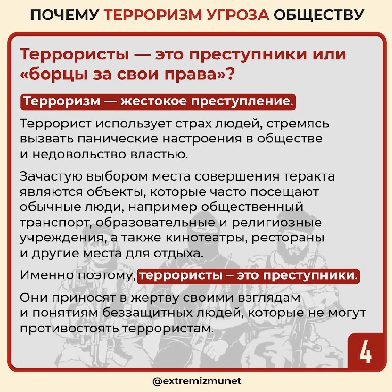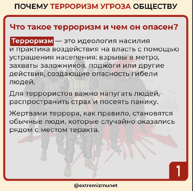Что такое терроризм и почему он несет угрозу обществу, читайте в наших карточках.