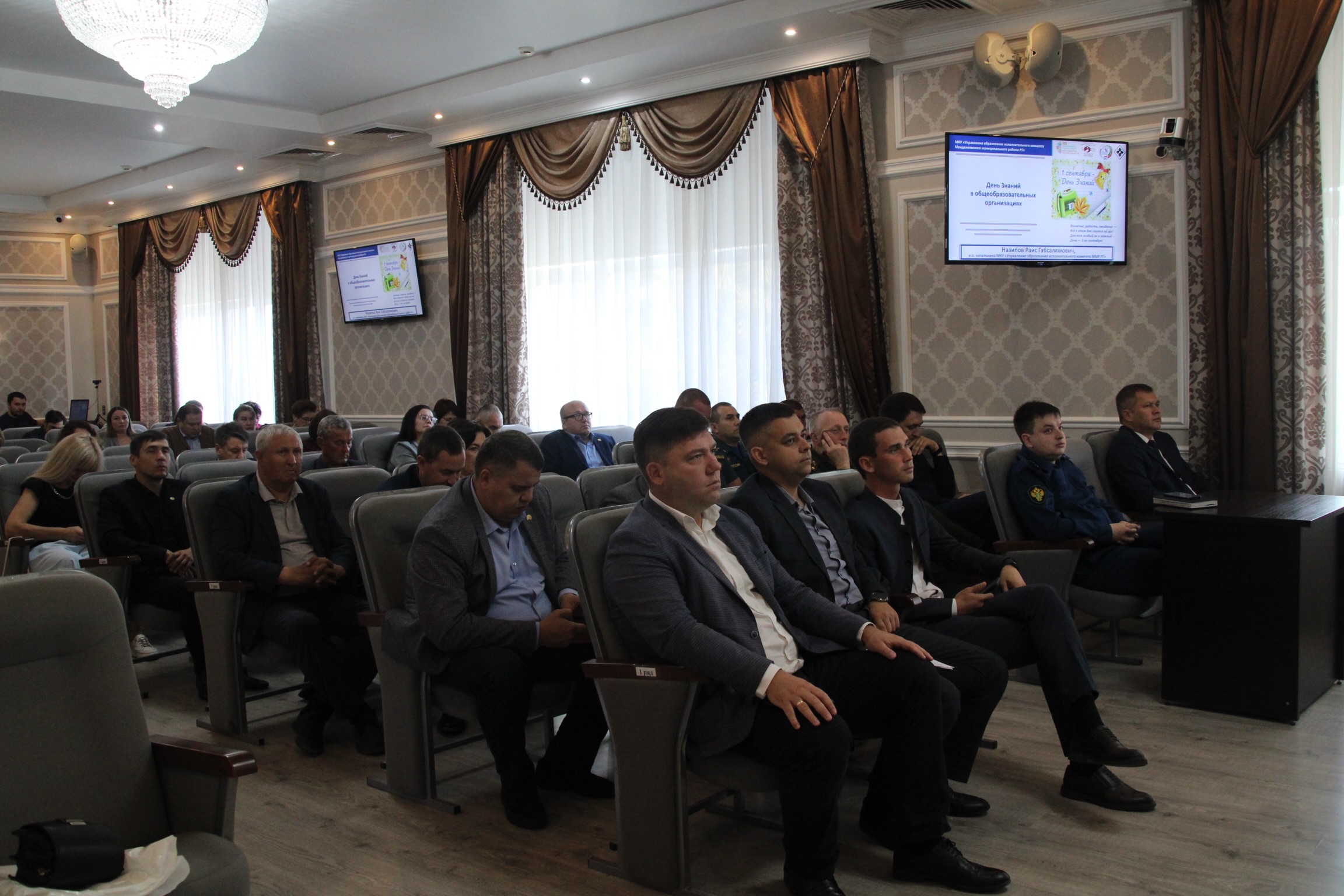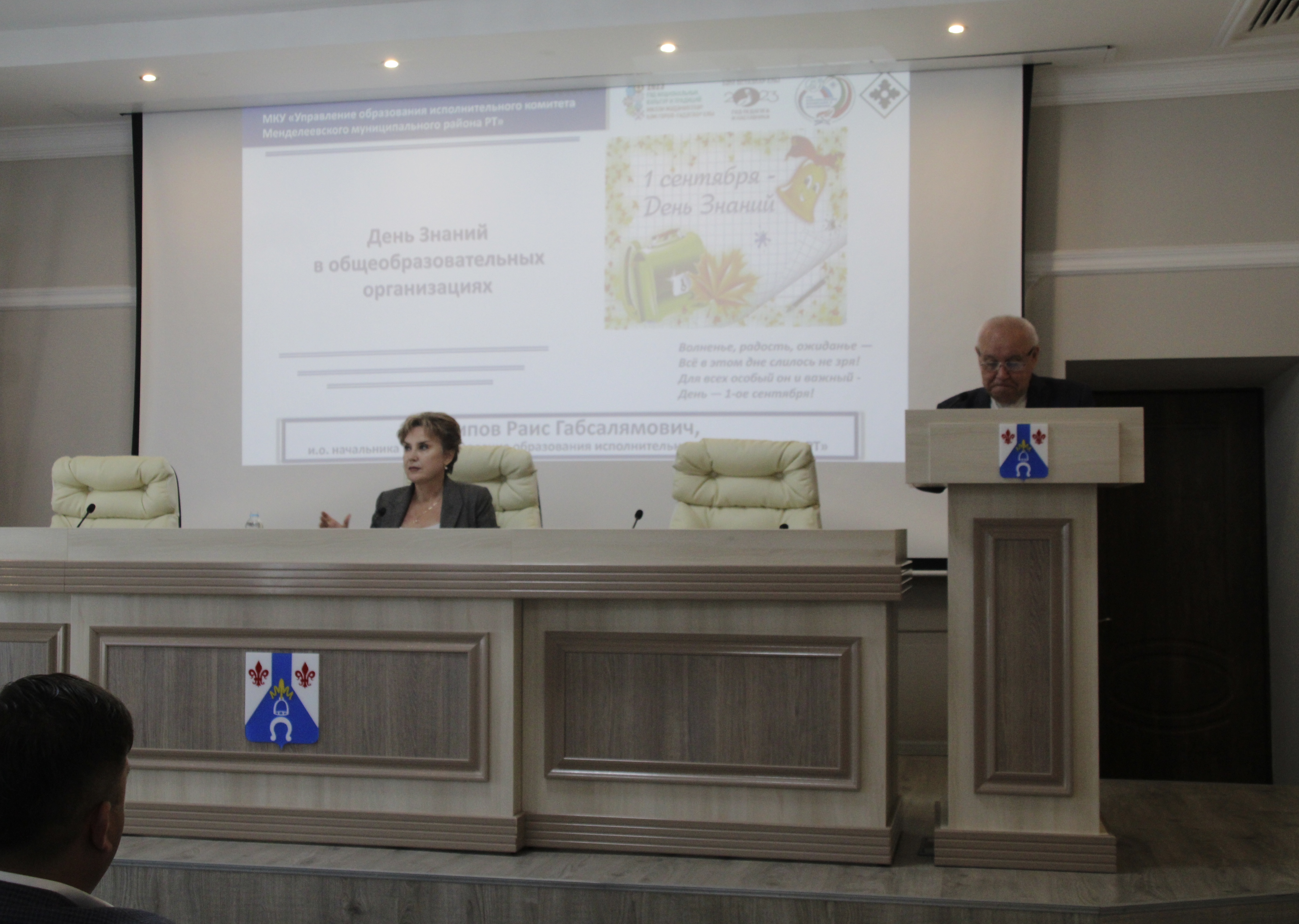 Далее о проведенных мероприятиях, посвященных Дню Знаний в общеобразовательных организациях района рассказал и.о. начальника Управления образования Раис Назипов.