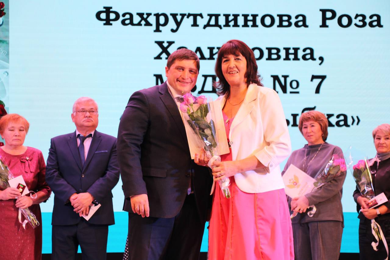 В ДК им. С.Гассара прошел праздничный концерт в честь учителей города и района! Это замечательная возможность отметить их важный труд и показать признательность за их работу. Глава района Радмир Беляев выразил свою благодарность педагогам и вручил им награды Министерства образования и науки РТ, благодарственные письма, почетные грамоты Главы района. Ветераны педагогического труда, текущие учителя и те, кто только начинает свою карьеру, а также работники дошкольного образования собрались в зале, чтобы отпраздновать этот профессиональный праздник. В этот день со сцены звучали слова поздравлений и признательности за столь важный труд учителя. Было подарено много улыбок и цветов