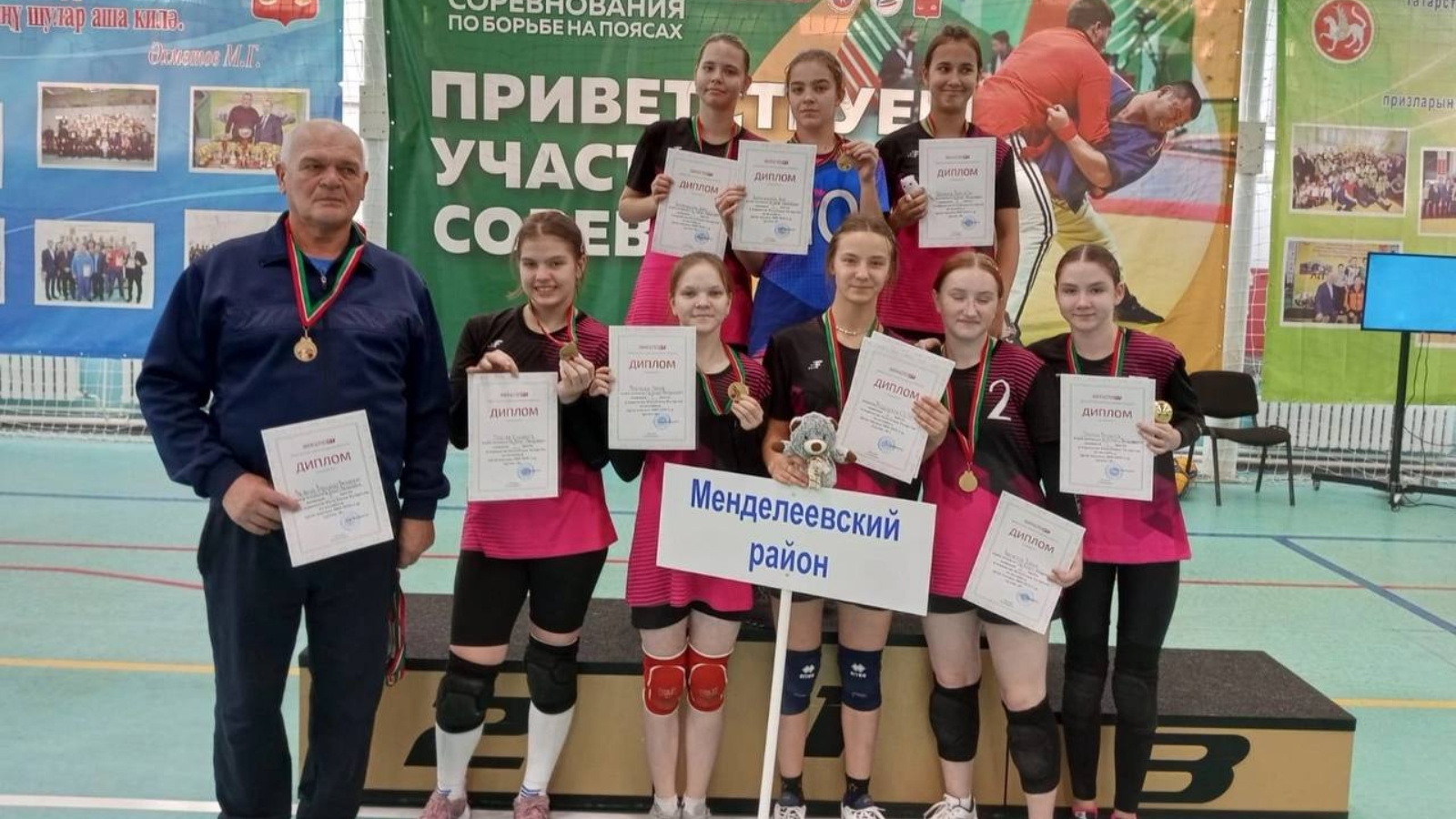 В селе Тюлячи с 12 по 15 октября прошло Первенство РТ по волейболу среди девушек 2009-2010 года рождения. В соревнованиях приняли участие 14 команд из малых городов Республики Татарстан. Одержав 6 побед из 6 игр наша команда стала Победителем Первенства. Поздравляем Александра Васильевича Басаркина и его команду с отличным результатом!