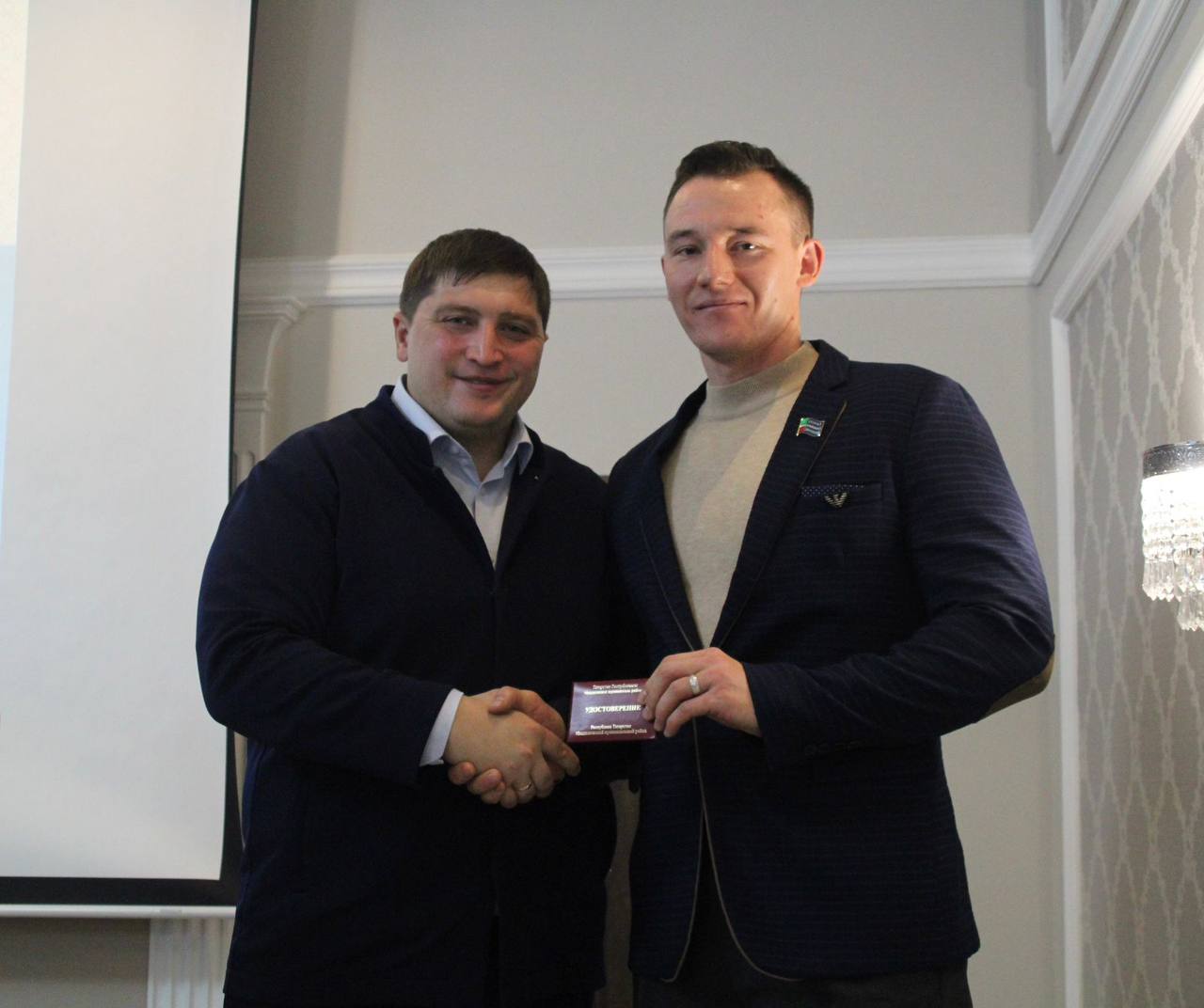 И вручил удостоверения вновь избранным Главам сельских поселений – депутатам Совета Менделеевского муниципального района.