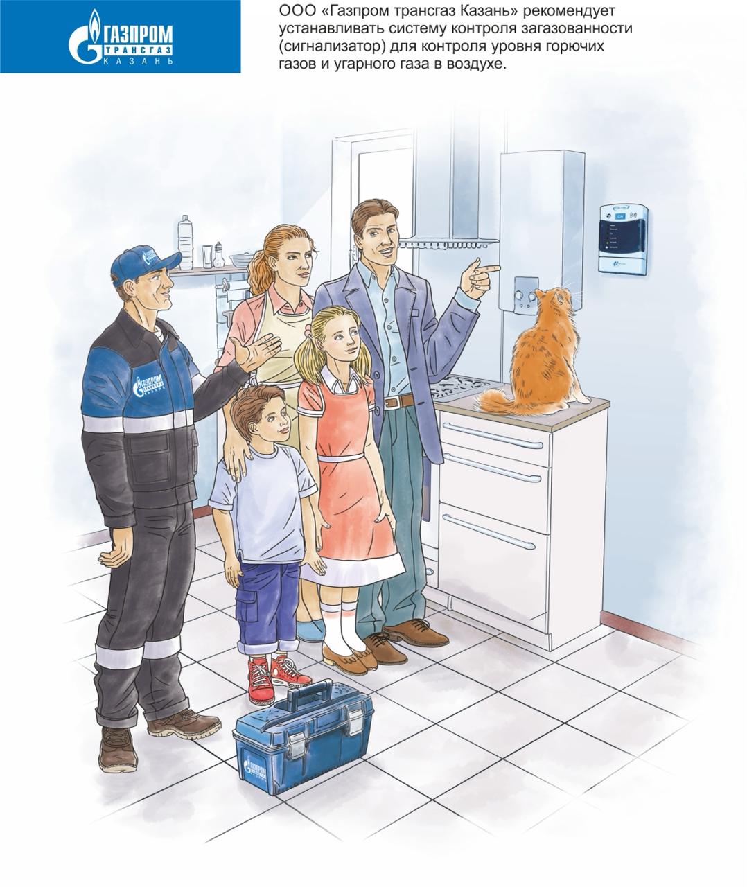 ООО «Газпром трансгаз Казань» рекомендует устанавливать систему контроля загазованности (сигнализатор) для контроля уровня горючих газов и угарного газа в воздухе. Обратите внимание на то, чтобы прибор был оснащен запорным клапаном. В случае утечки газа или повышения концентрации продуктов сгорания, раздастся звуковой сигнал, а клапан перекроет газ. Сигнализатор должен иметь паспорт и сертификат, устанавливать его могут допущенные к данным видам работ организации. Соблюдение правил по пользованию газовым оборудованием – залог благополучия, сохранности вашей собственной жизни и жизни ваших близких!