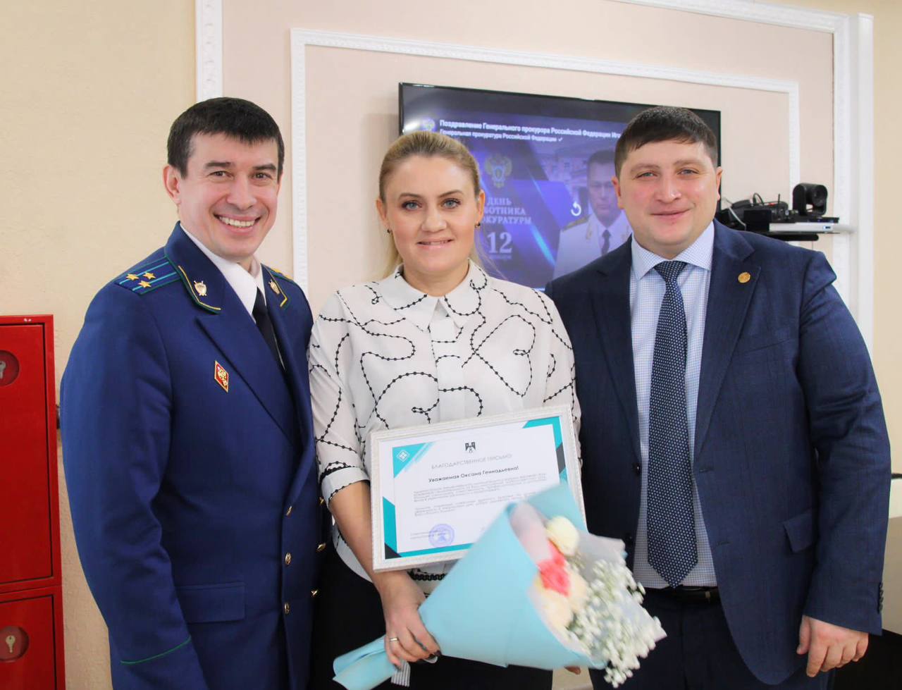 «Мы занимаемся тем, чтобы район был стабилен во всех отношениях. Спасибо руководителям правоохранительных органов и суда за поддержку. Только благодаря совместной работе мы снижаем уровень преступности в районе и поддерживаем тот порядок, который есть на сегодняшний день.»В завершении мероприятия глава района и прокурор вручили Благодарственные письма за многолетний, добросовестный труд, большую самоотдачу, ответственность, профессионализм и достойный вклад в укрепление законности и правопорядка и в связи с профессиональным праздником - Днём работника прокуратуры пенсионеру прокуратуры Республики Татарстан Латыповой Оксане Геннадьевне и техническому работнику прокуратуры Менделеевского района Илаевой Раисе Николаевне
