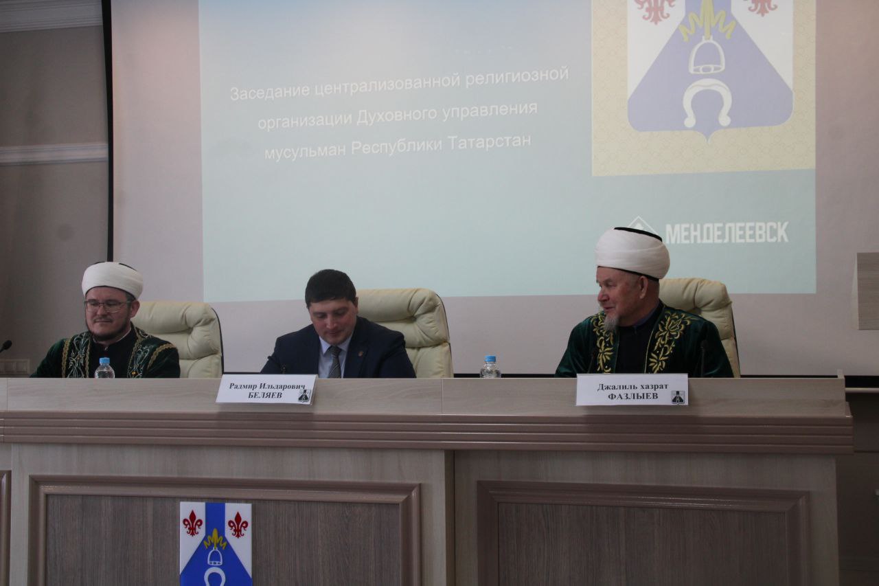 На заседании прибыл главный казый РТ Джалиль Хазрат Фазлыев, а также имамы с разных регионов республики. Глава района Радмир Беляев рассказал о деятельности Мухтасибата Менделеевского района.