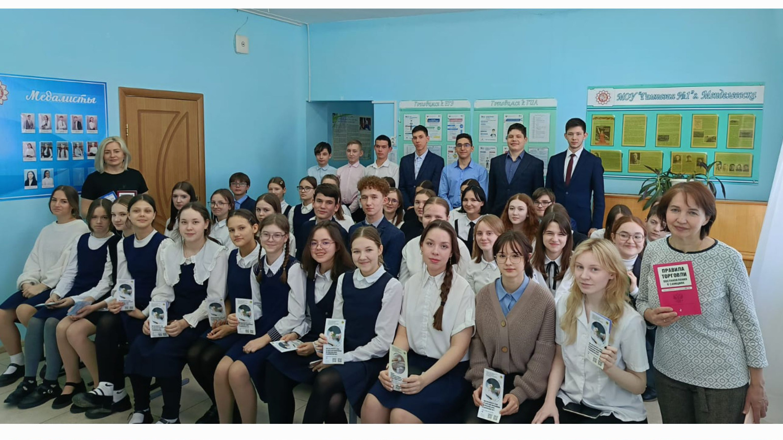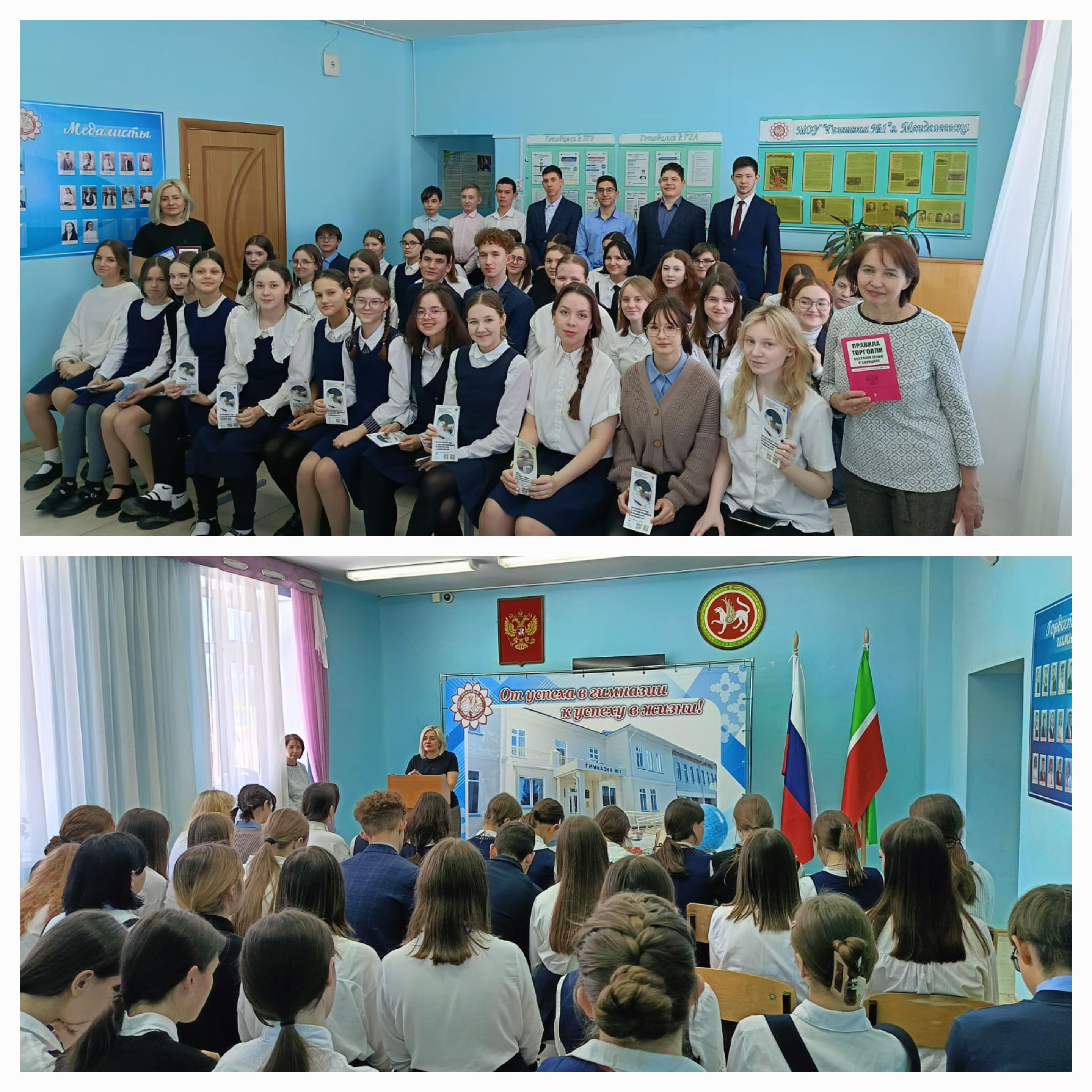 Всем участникам мероприятия были даны квалифицированные и исчерпывающие ответы, на вопросы в сфере потребительского рынка, розданы памятки для потребителей, а наиболее активные участники получили памятные подарки с логотипом подпрограммы №6 «Развитие комплексной системы защиты прав потребителей в Республике Татарстан на 2014-2025 годы». Уровень подготовки мероприятия и компетентность специалистов получили высокую оценку участников мероприятия. В завершении встречи сделали памятное фото. Руководство гимназии, в лице директора Закиева Рината Рабхатовича, поблагодарило специалистов Набережночелнинского территориального органа Госалкогольинспекции Республики Татарстан за повышение уровня потребительских знаний учеников.