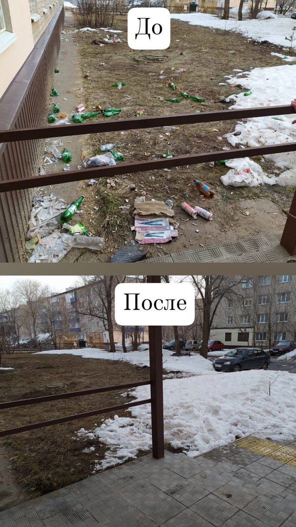 Так, в среду, мы собрали четыре мешка и еще две коробки мусора, прорыхлили снег, раскидали его на очищенные участки. Пусть Земля дышит и наполняется влагой!