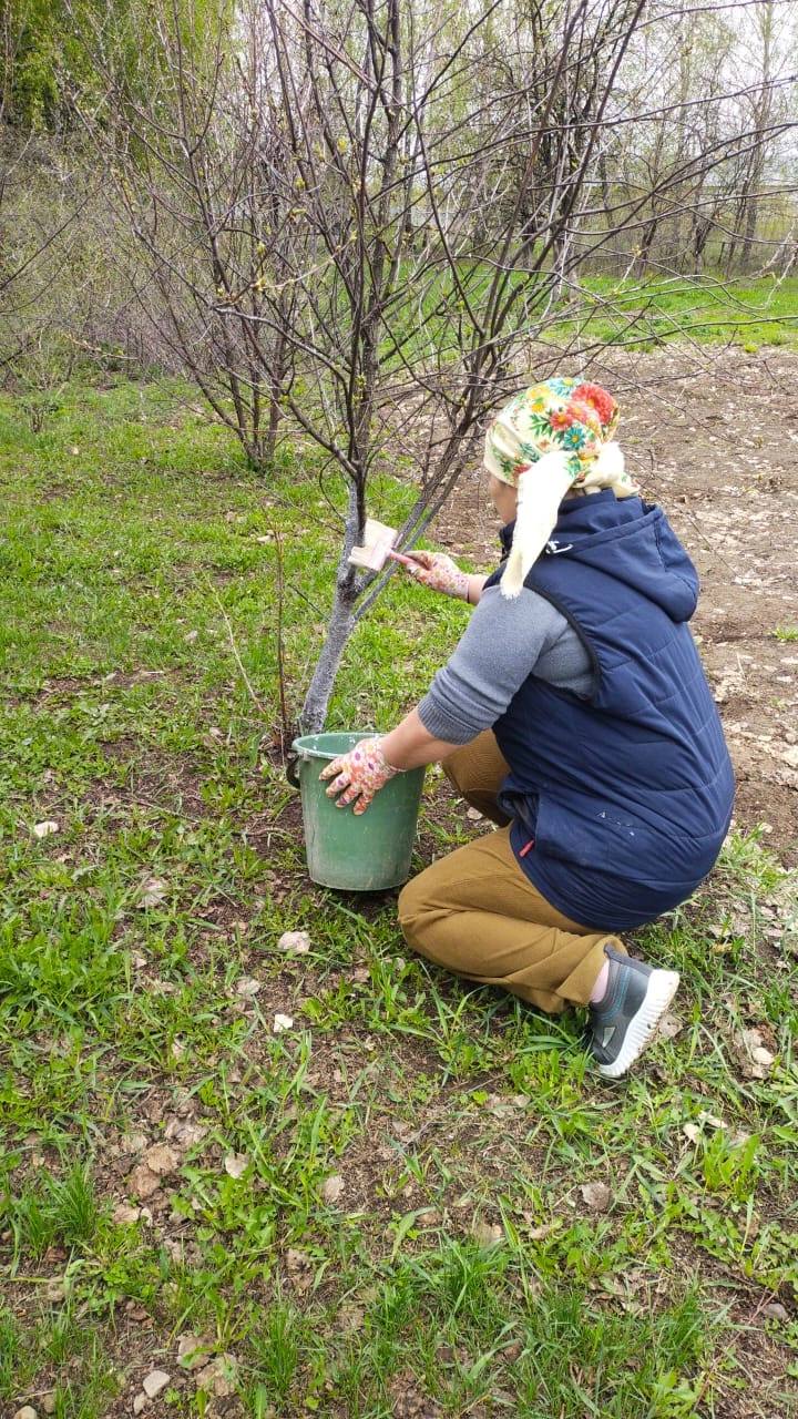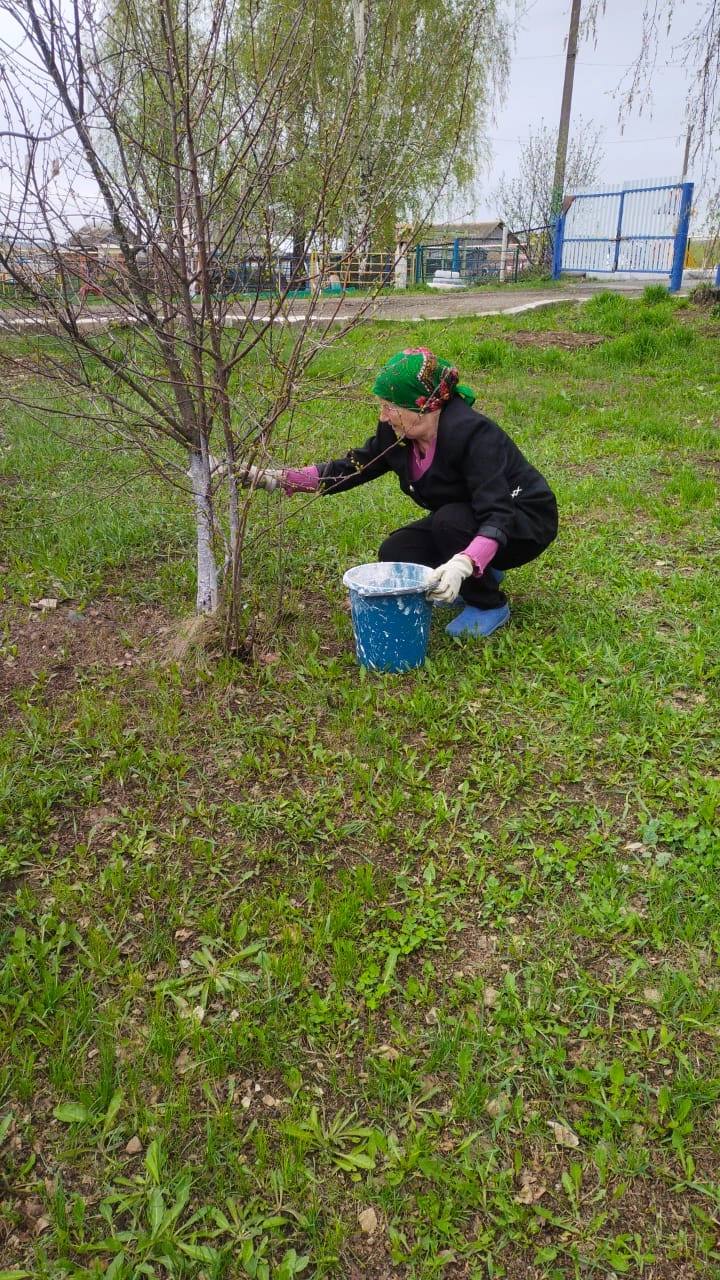 Была проведена побелка деревьев в лесополосе, примыкающей к селу Татарские Челны, также были побелены яблони, вишни, рябина как на пришкольном участке, так и на площадке детского сада.