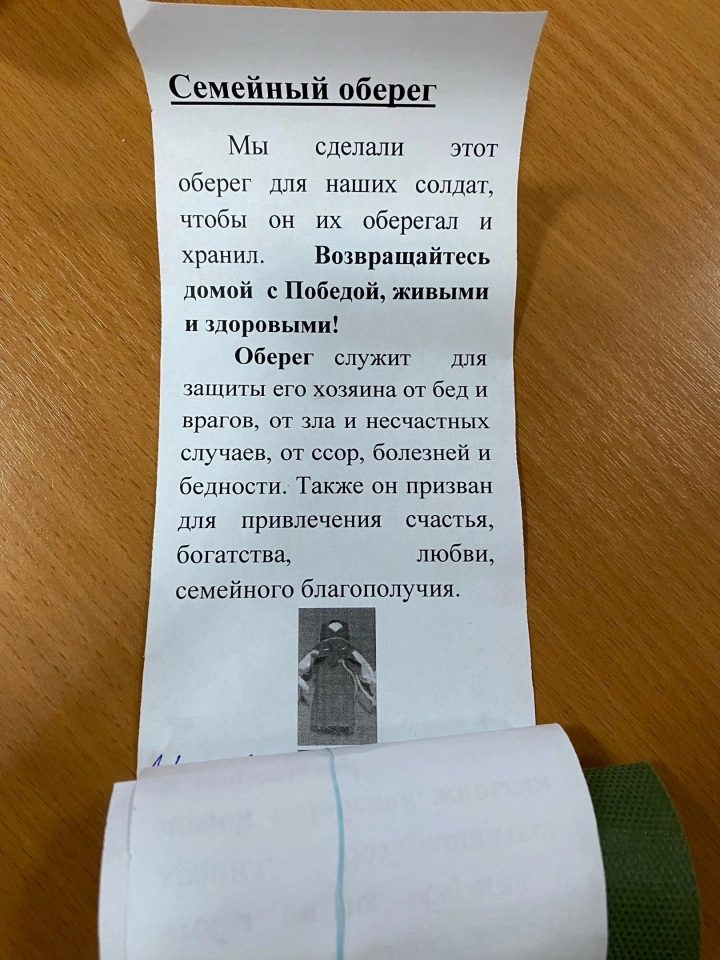 К каждой кукле-оберегу приложили письмо со словами словами: «Возвращайтесь домой живыми и здоровыми».