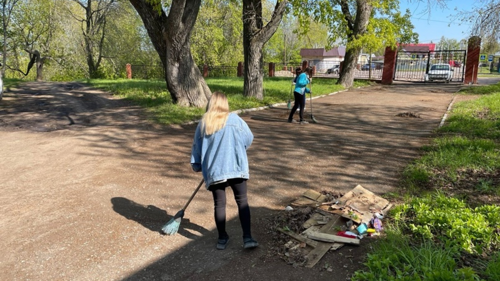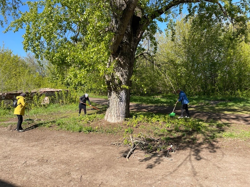 Так дружной командой организовали субботник на территории имения Ушковых, общими силами отчистили участок от старой листвы.