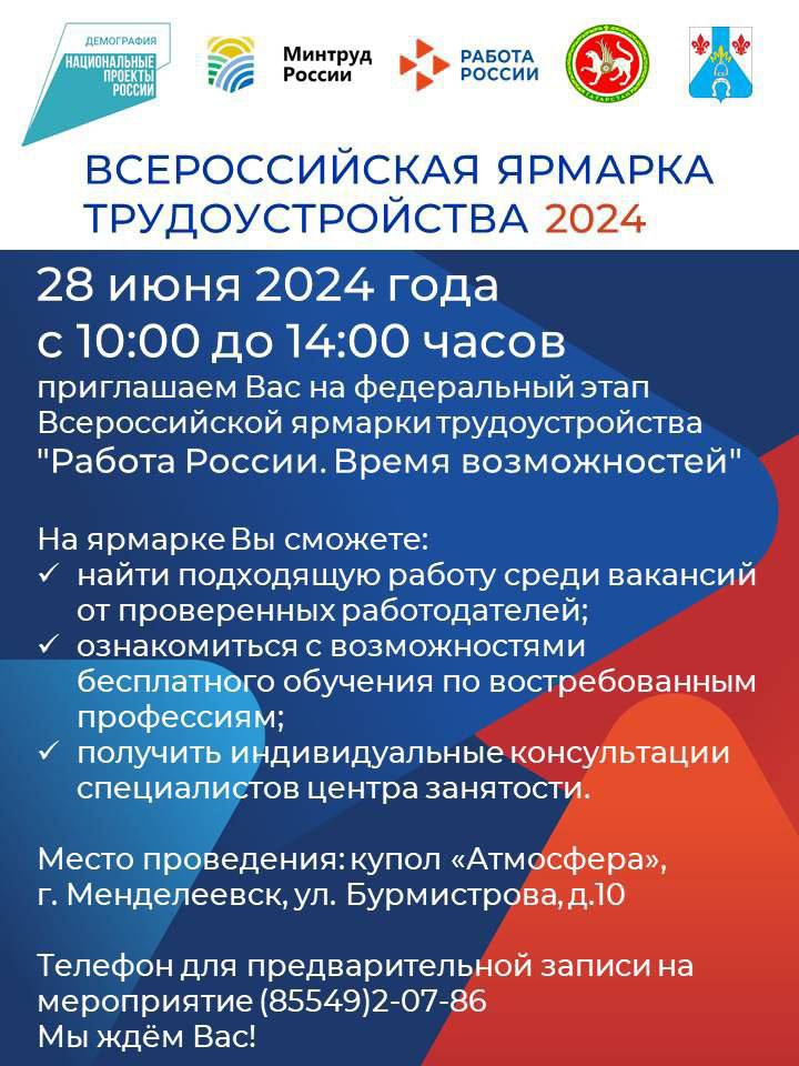 28 июня состоится федеральный этап Всероссийской ярмарки трудоустройства «Работа России. Время возможностей».