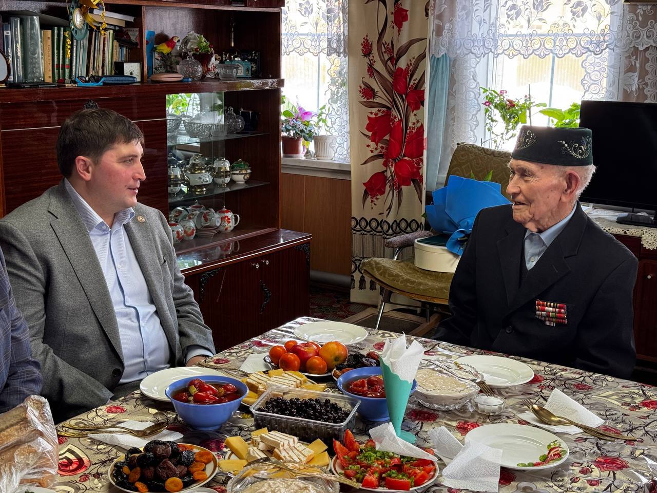 В преддверии Дня Защитника Отечества глава района Радмир Беляев посетил ветерана Великой Отечественной войны Зайнака Аглиевича.