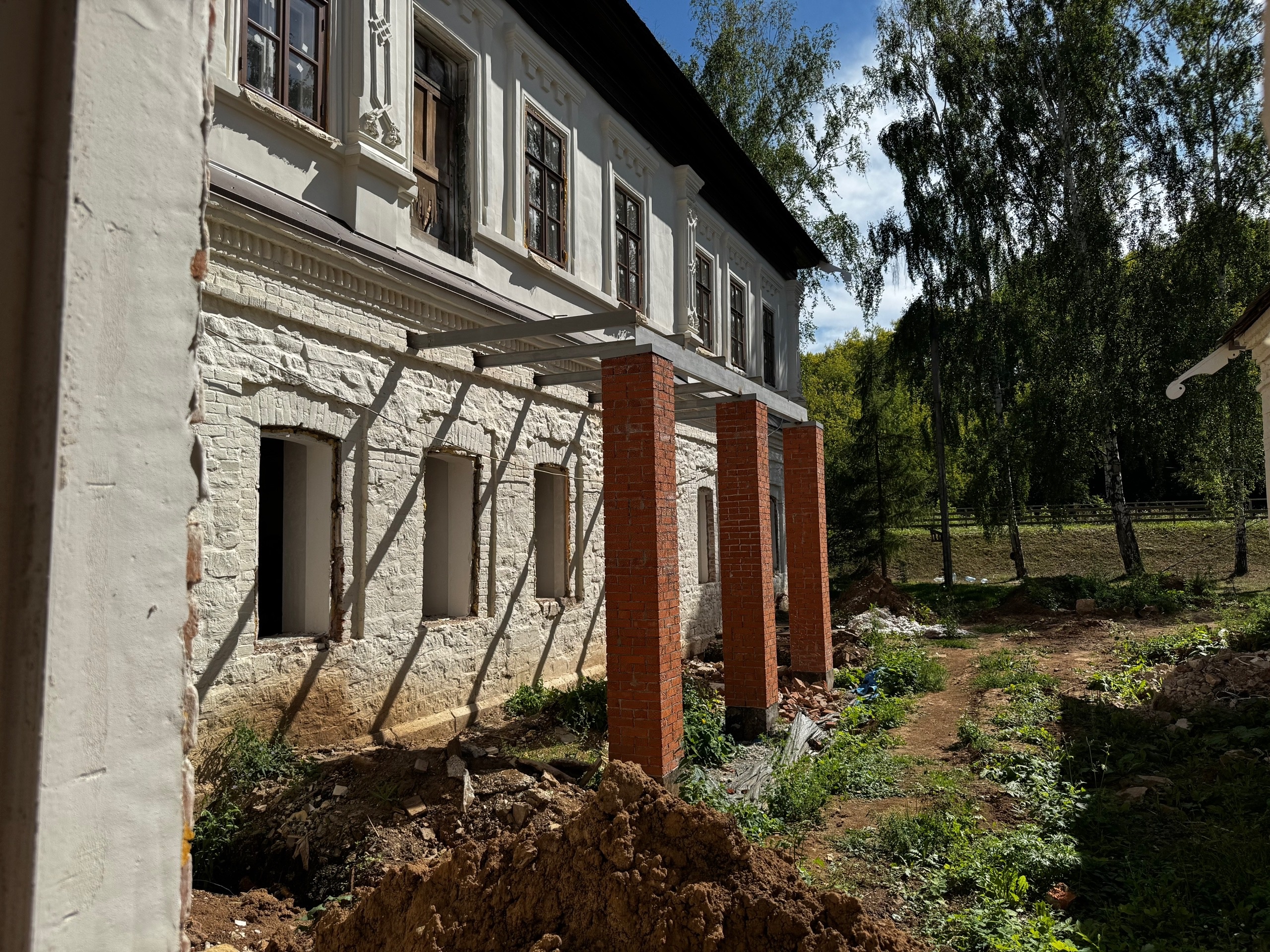 В музее – завершены работы по электрике, водоснабжению и отоплению. Выполнена предчистовая отделка. Начаты работы по благоустройству территории.