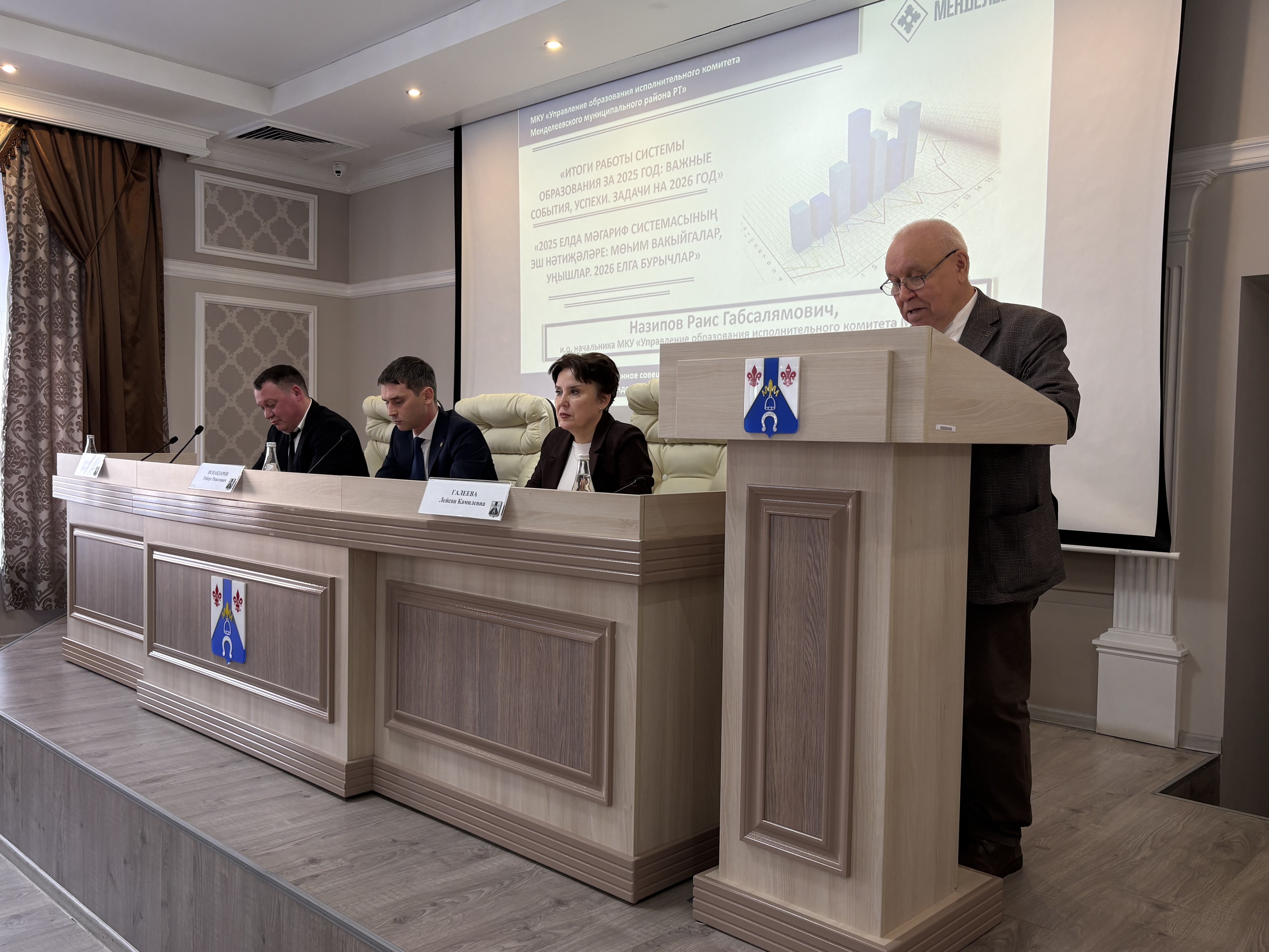 Далее об итогах деятельности за 2025 год доложил начальник управления образования - Раис Назипов.