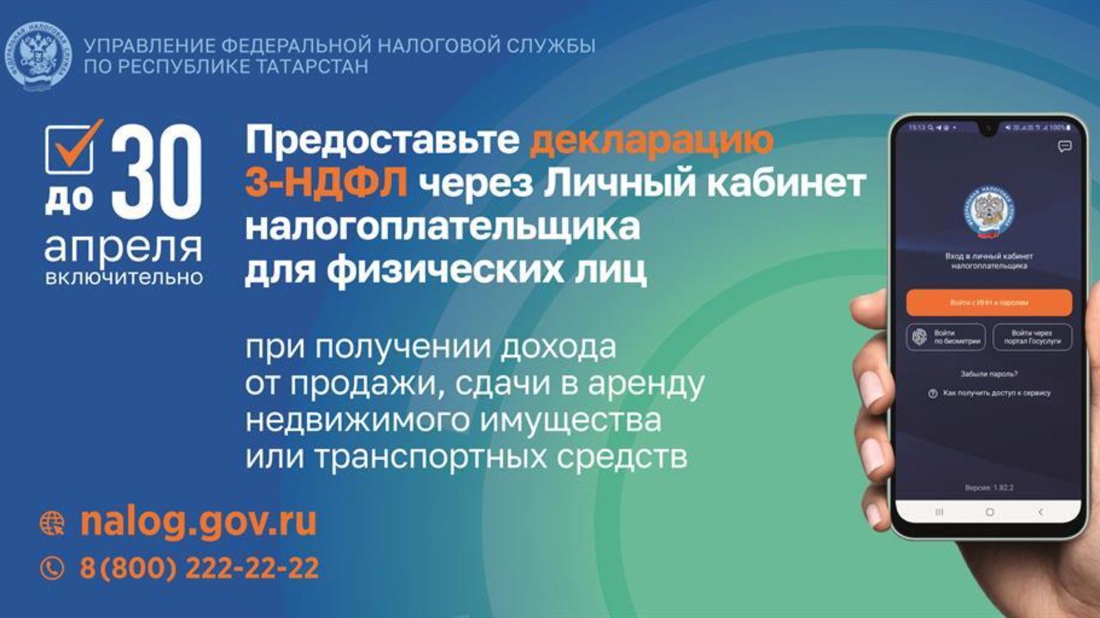 До 30 апреля включительно необходимо представить декларацию 3-НДФЛ при получении дохода от продажи имущества, сдачи недвижимости в аренду или транспортных средств. Сделать это удобнее всего через Личный кабинет налогоплательщика для физических лиц на сайте ФНС России.