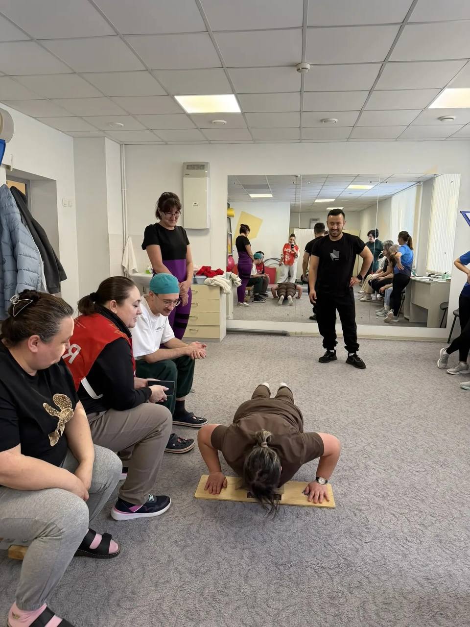 Врачи, медицинские сёстры и административный персонал с энтузиазмом включились в спортивные испытания. Участники проверили свои силы в гибкости, отжиманиях и подъёме туловища из положения лёжа за 1 минуту. Все желающие смогли выполнить нормативы и приблизиться к получению знака отличия ГТО.
