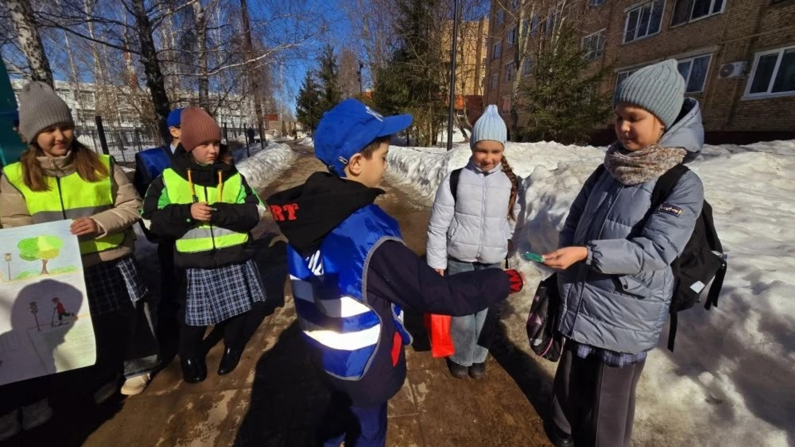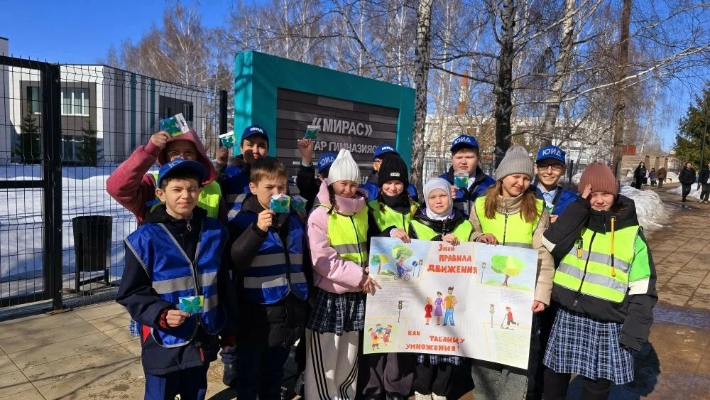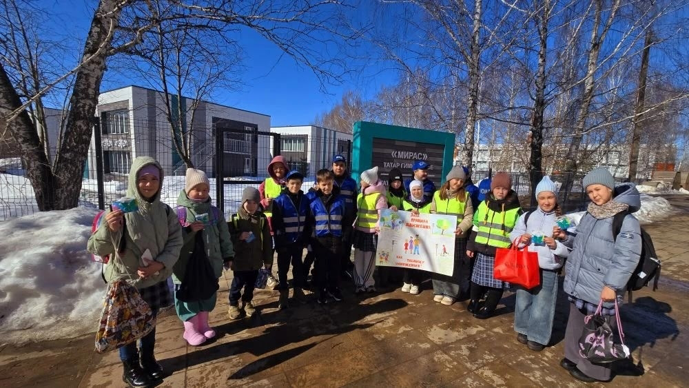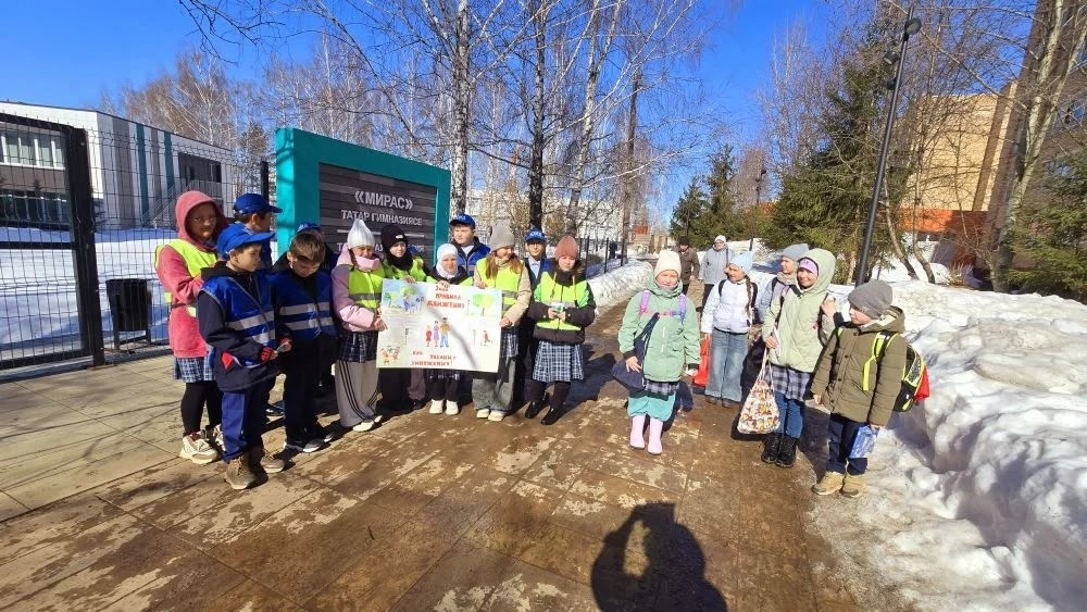 Юные инспекторы татарской гимназии «Мирас» вместе с педагогом, руководителем отряда ЮИД Гульсиной Фазылгалиевной Аминовой вышли на бульвар Интернационалистов в рамках акции «Стань заметней на дороге»!