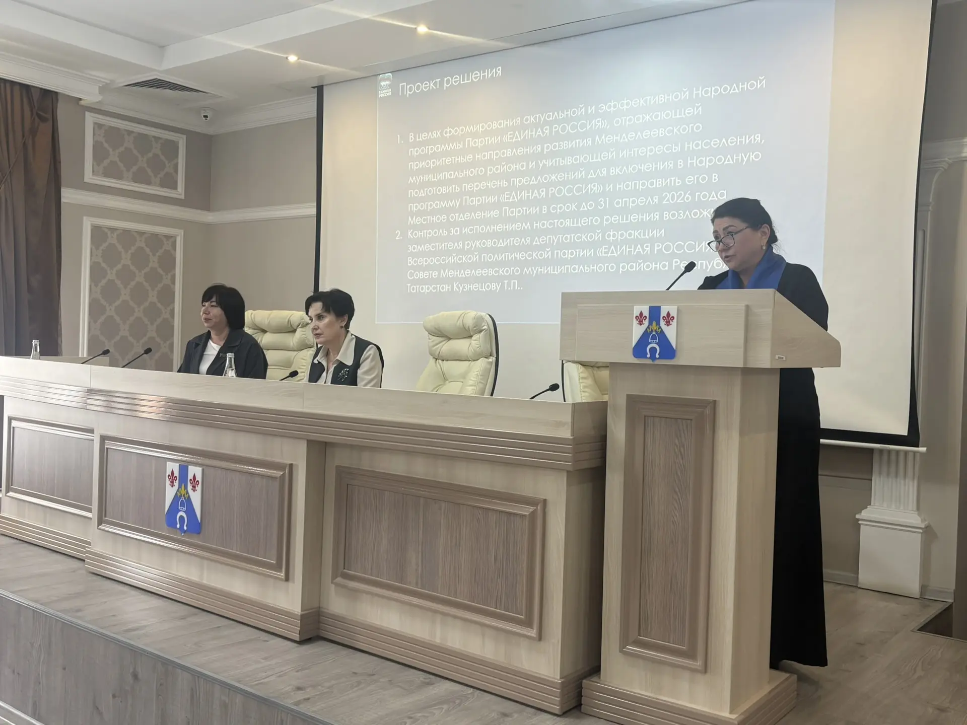 Под председательством руководителя депутатской фракции Совета Менделеевского района Лейсан Галеевой прошло собрание депутатов фракции Всероссийской политической партии «Единая Россия» в Совете Менделеевского муниципального района Республики Татарстан.
