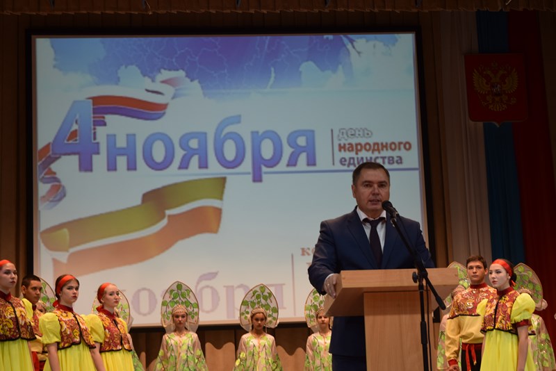 3 ноября во Дворце культуры им. С.Гассара состоялся концерт, посвящённый Дню народного единства. Собравшихся поздравил Глава района Валерий Чершинцев:"Сердечно поздравляю вас с Днем народного единства. Этот государственный праздник имеет глубокие историческо-нравственные корни и учрежден в память о героических событиях начала XVII века. В те далекие времена наши предки - люди разных национальностей, сословий и вероисповеданий - освободили Отчизну от иноземных захватчиков, положив конец смуте и глубочайшему кризису, поразившему российское государство. Мужество и духовная сплоченность россиян, основанные на самоотверженной любви к родной земле и ответственности за ее судьбу, помогли выстоять в трудный час и одержать победу.