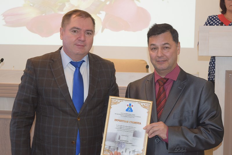 Почётной Грамотой Главы района за многолетний добросовестный труд, большой вклад в развитие культуры в Менделеевском муниципальном районе и в связи с 50-летним юбилеем наградили Ахунзянова Радика Галимзяновича;