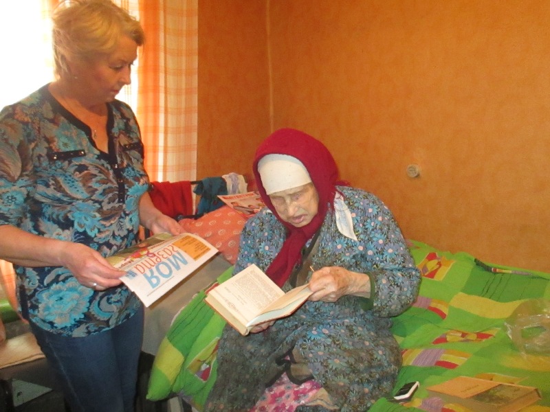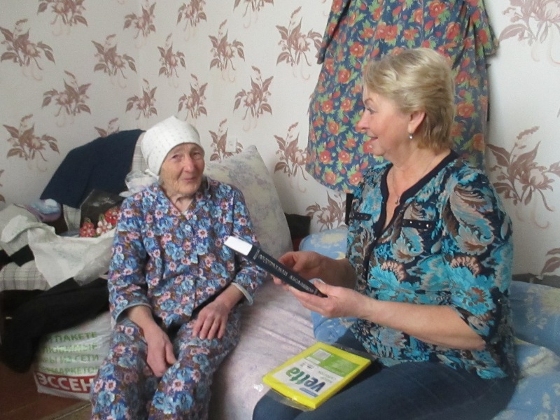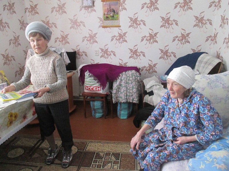 7 марта библиотекарь Тихоновской сельской библиотеки Медведева Надежда Степановна поздравила на дому своих бывших читательниц с праздником 8 марта. Мои бабушки очень обрадовались моему приходу и остались довольны.