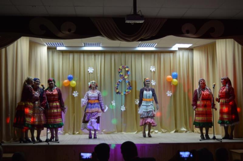 Весь вечер на сцене один яркий номер сменял другой. Прекрасную половину человечества поздравляли ансамбль «Лунное сияние», ансамбль кряшен «Монай» и гости из с. Татарские Челны – ансамбль «Рождественские напевы». А танцевальный коллектив «Азарт» очень порадовал зрителей исполнением песни «Стоят девчонки».